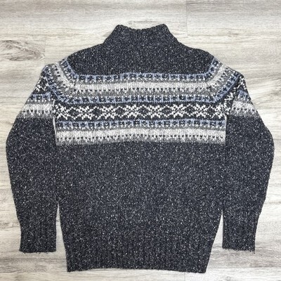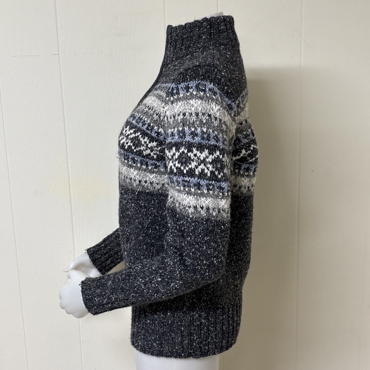 One on One Fair Isle Sweater Jacket Womens Medium Gray Blue Fleck Zip Cardigan