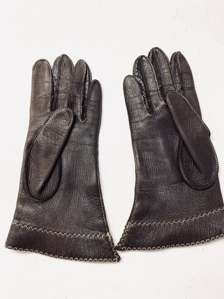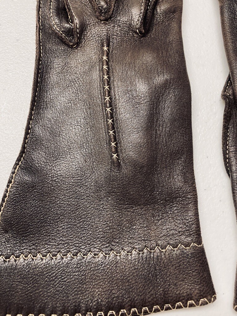 Vintage 1930s Womens Brown Leather Gauntlet Gloves Size 6.5 Perfect Condition