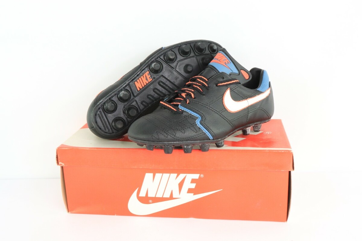 NOS Vtg 90s Nike Rio FG Soccer Cleats Boots Black Blue Leather Womens 7 Mens 5.5