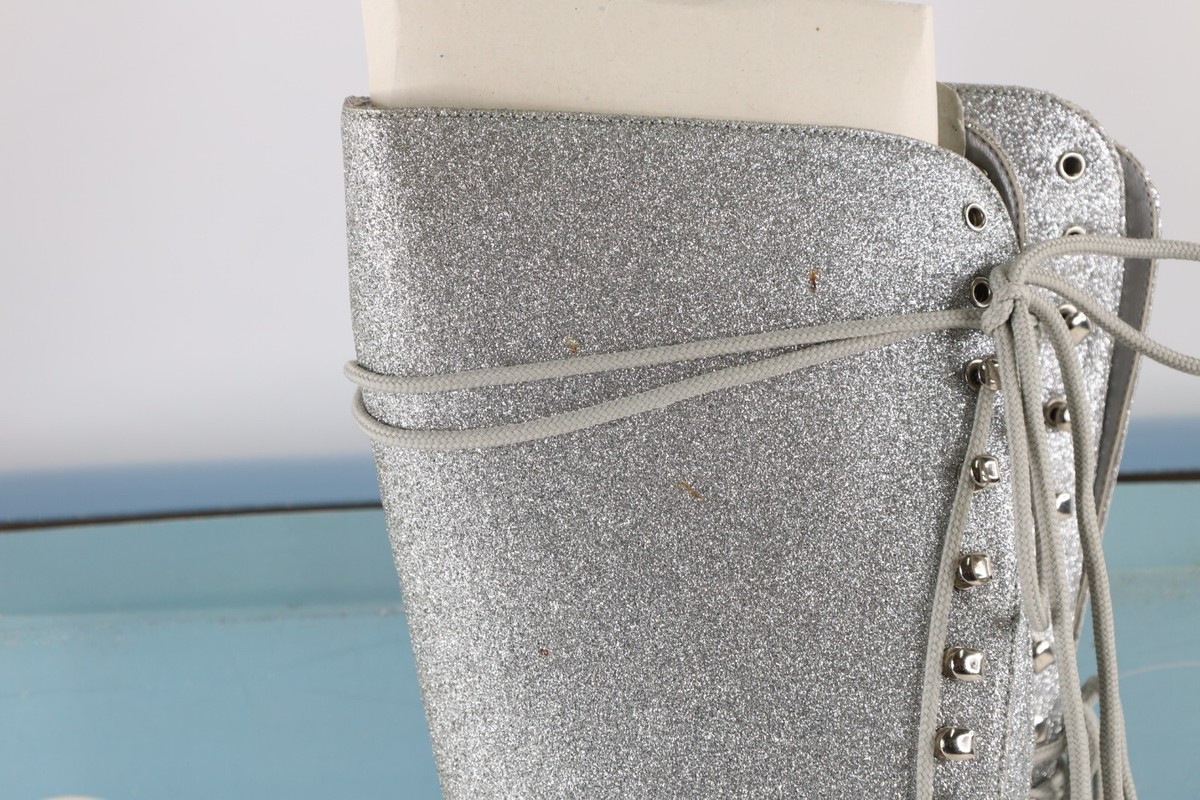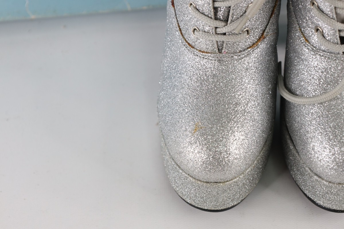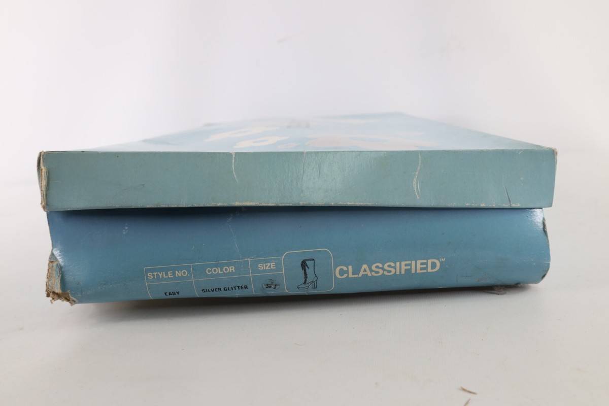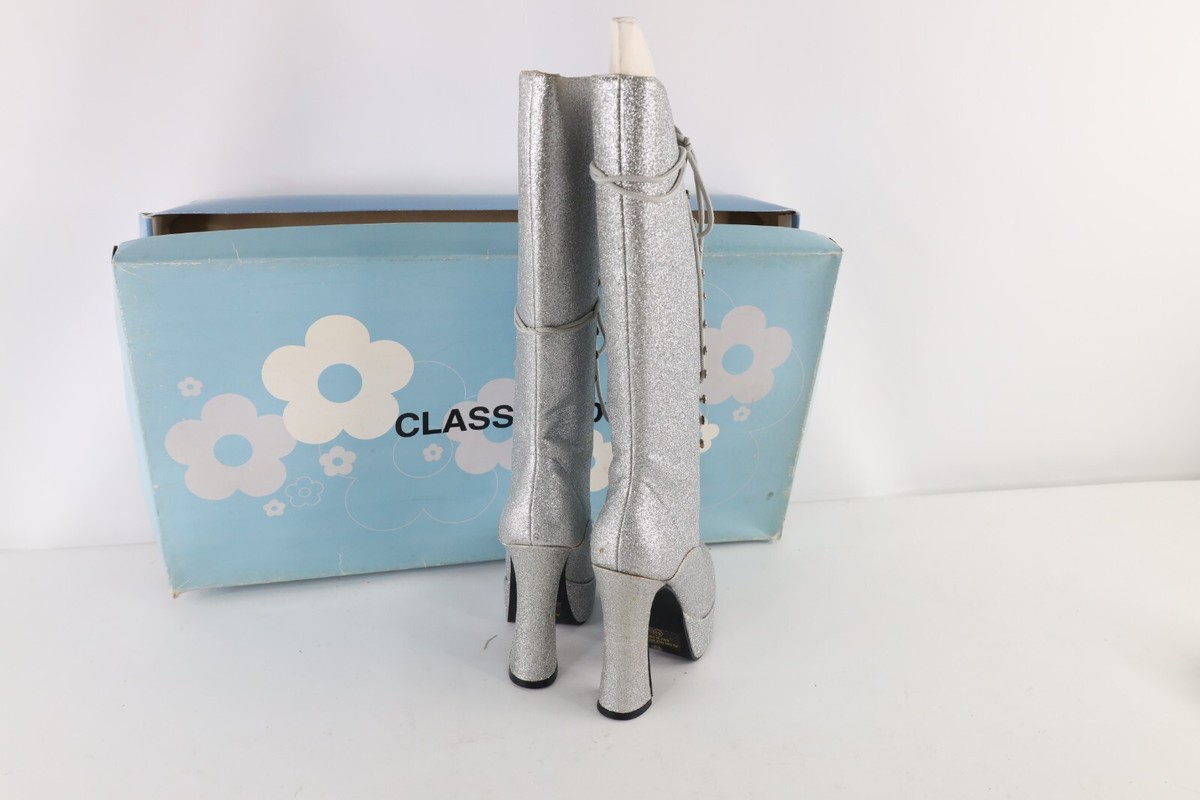 NOS Vintage 90s Streetwear Womens 5.5 Chunky Platform Heeled Go Go Boots Silver