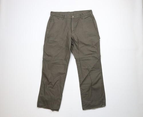 Vintage Dickies Mens 34x29 Thrashed Dungaree Wide Leg Pants Olive Green AS IS