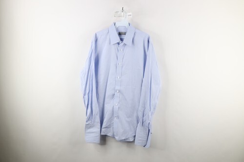 Indochino Mens Size Large French Cuff Collared Long Sleeve Button Shirt Blue