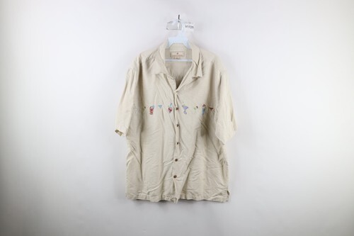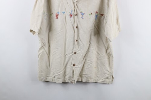 Vintage 90s Streetwear Mens Large Distressed Martini Silk Hawaiian Button Shirt