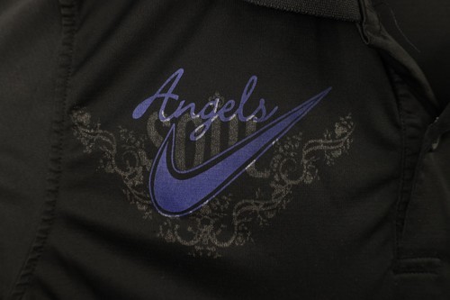 Vintage Nike Mens Medium Spell Out Tribal Angels Mini Swoosh Collared Polo Shirt