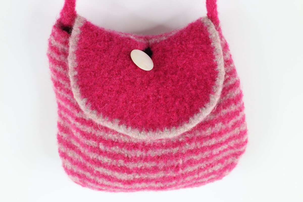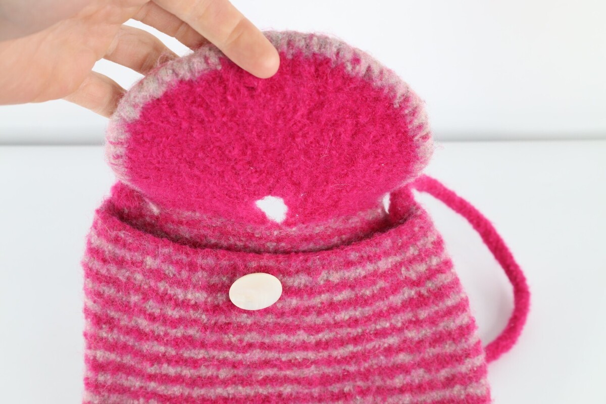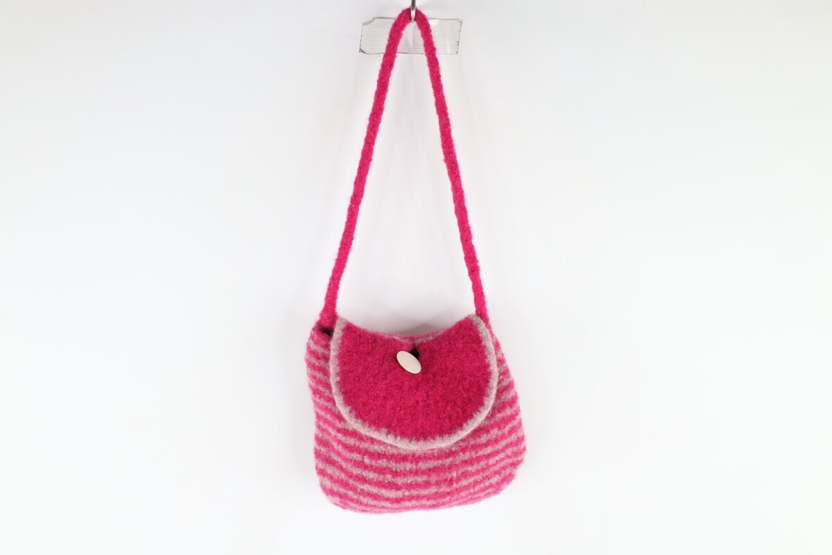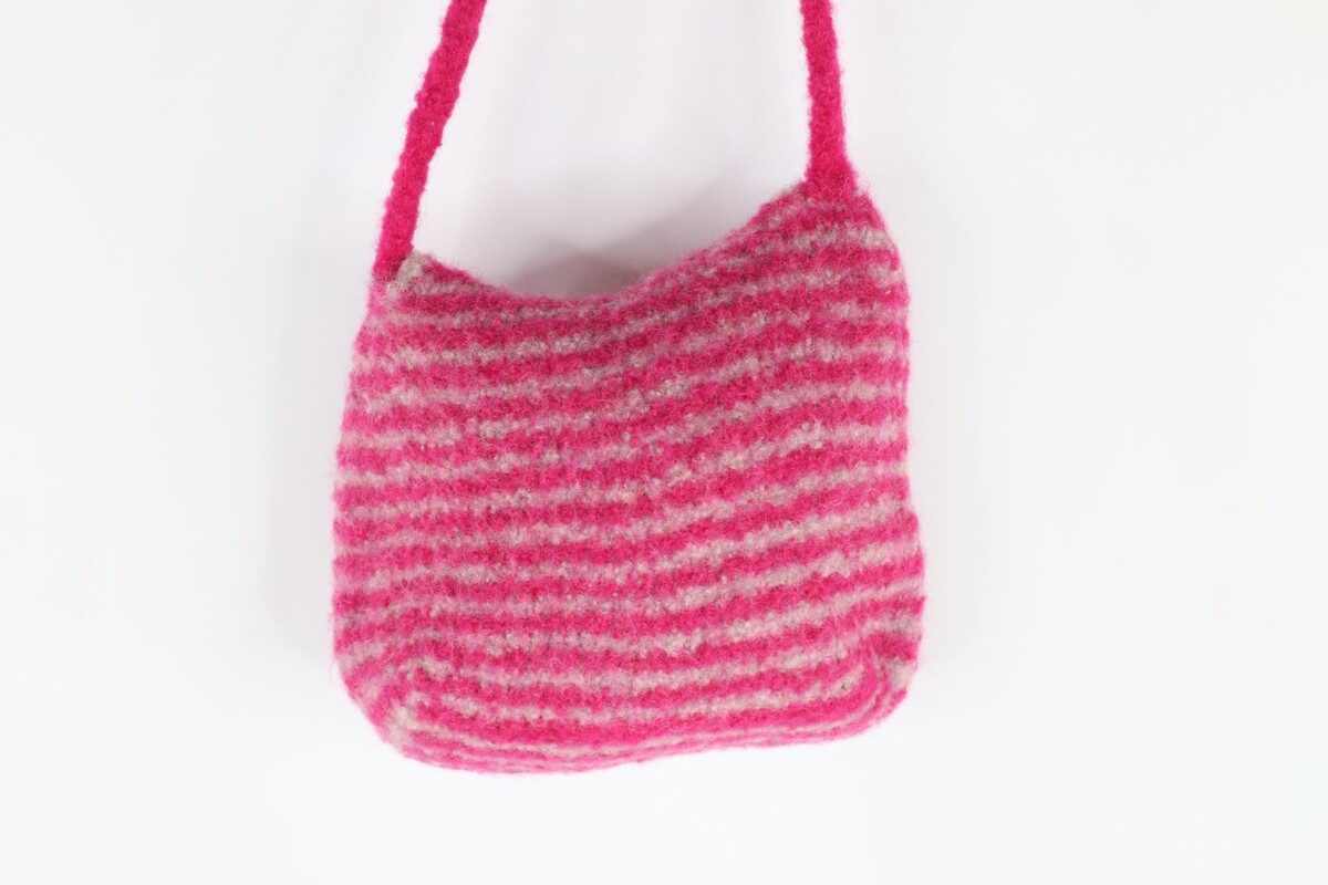 Vintage Y2K Streetwear Wool Blend Knit Striped Button Flap Purse Pink