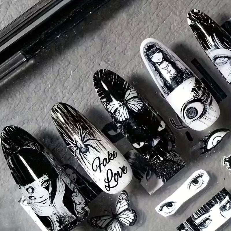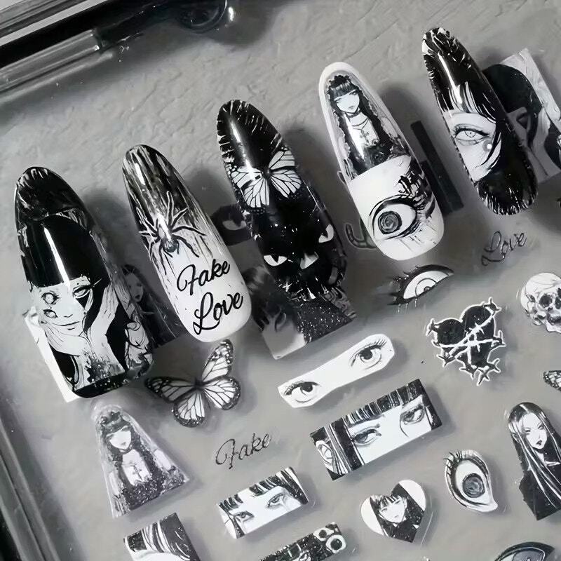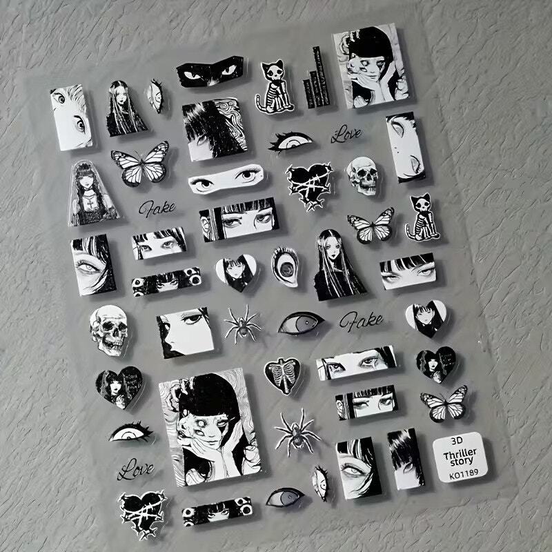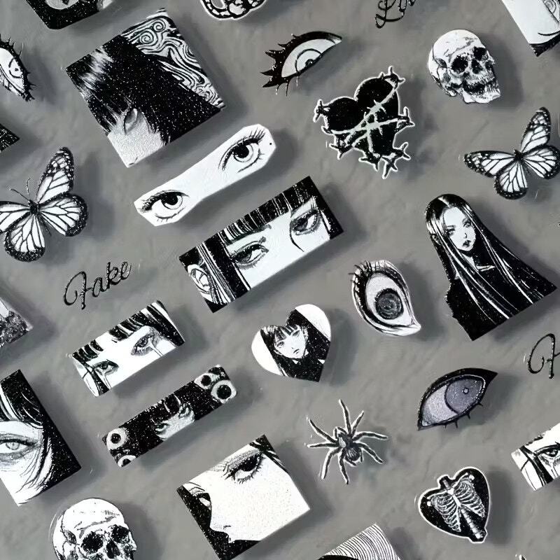 1 sheet of Gothic Horror Manga Junji Ito Art Style Nail Stickers