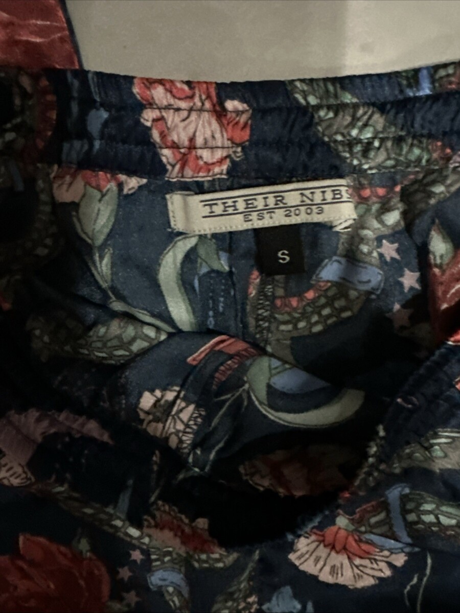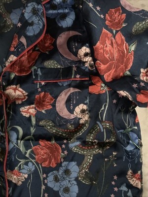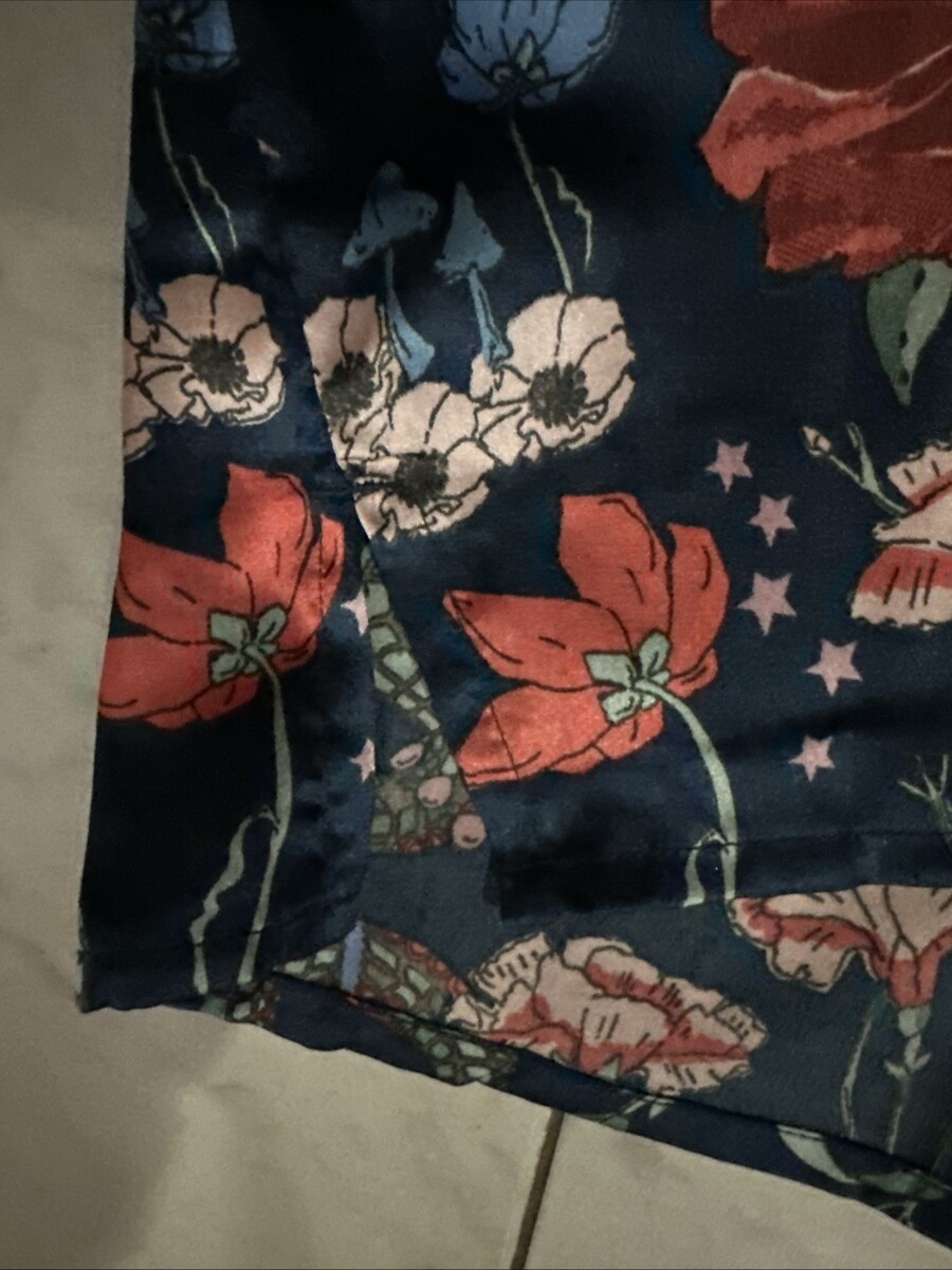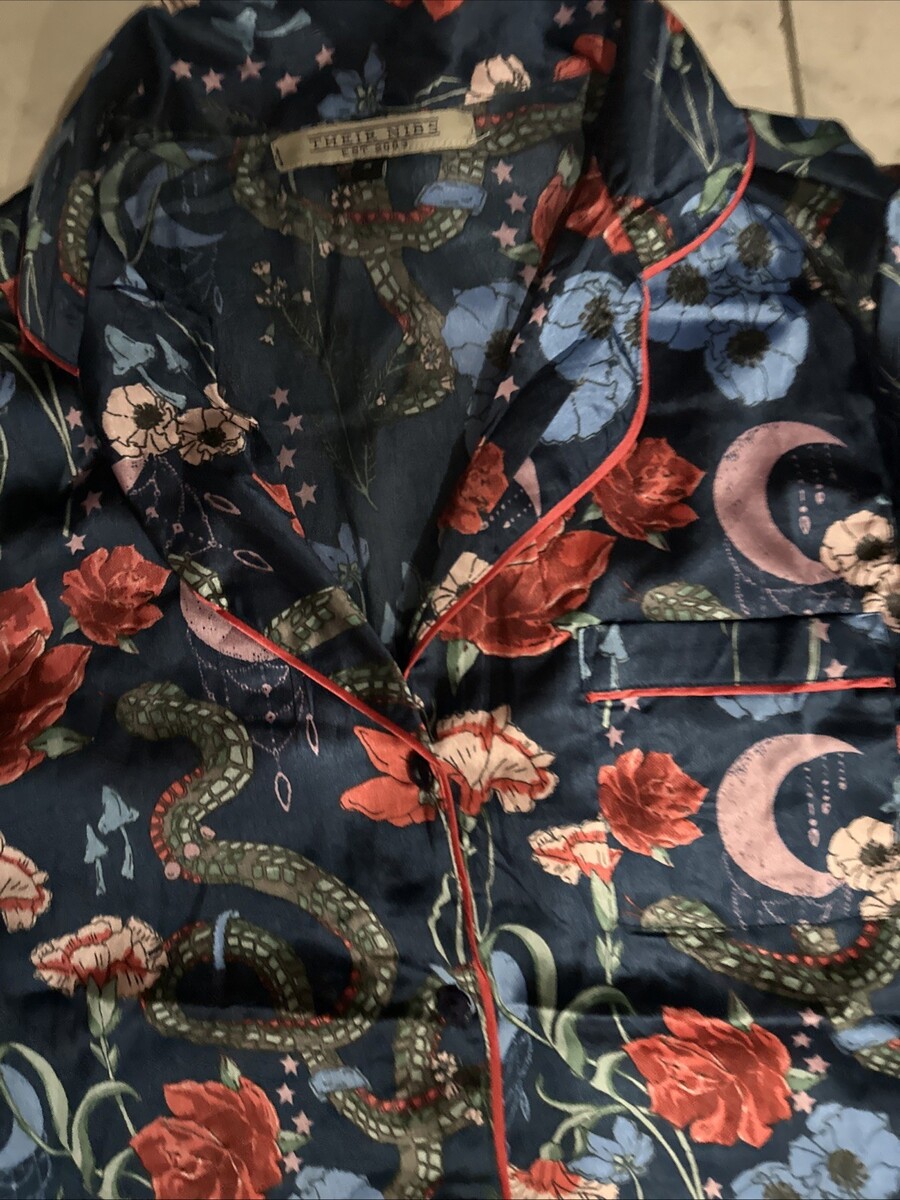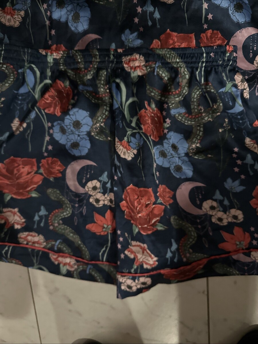 THEIR NIBS Sexy Satin 2p Pajama Set Small Top & Short Blue Floral Buttons Pre Ow
