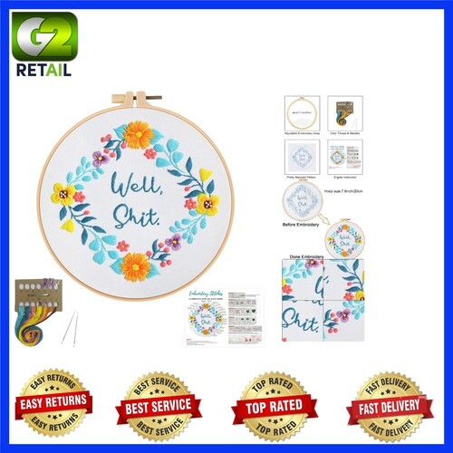 Kit Includes: COSMO Embroidery Floss (100 percent cotton), 1m each, COSMO Embroidery Cloth (100 percent cotton), Embroidery Needle, Rectangle Wooden Frame 7.5 inches x 6.25 inches, Instruction Manual with Design Chart.