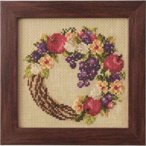 Cosmo Rose Wreath Seasonal Flower Arrangement Cross Stitch Kit. This cross stitch kit comes with everything you need to make the beautiful seasonal floral project. September: Rose Wreath. Kit Includes: COSMO Embroidery Floss (100 percent cotton), 1m each, COSMO Embroidery Cloth (100 percent cotton), Embroidery Needle, Rectangle Wooden Frame 7.5 inches x 6.25 inches, Instruction Manual with Design Chart. Frame Size: Approximately 7-1/2 inches tall x 6-1/4 inches wide. Difficulty Level: Intermediate. No. 592309. CHK-592309