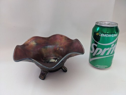 Northwood Amethyst Carnival Glass Fine Cut Roses Footed Candy Dish 7 x 3 Inch