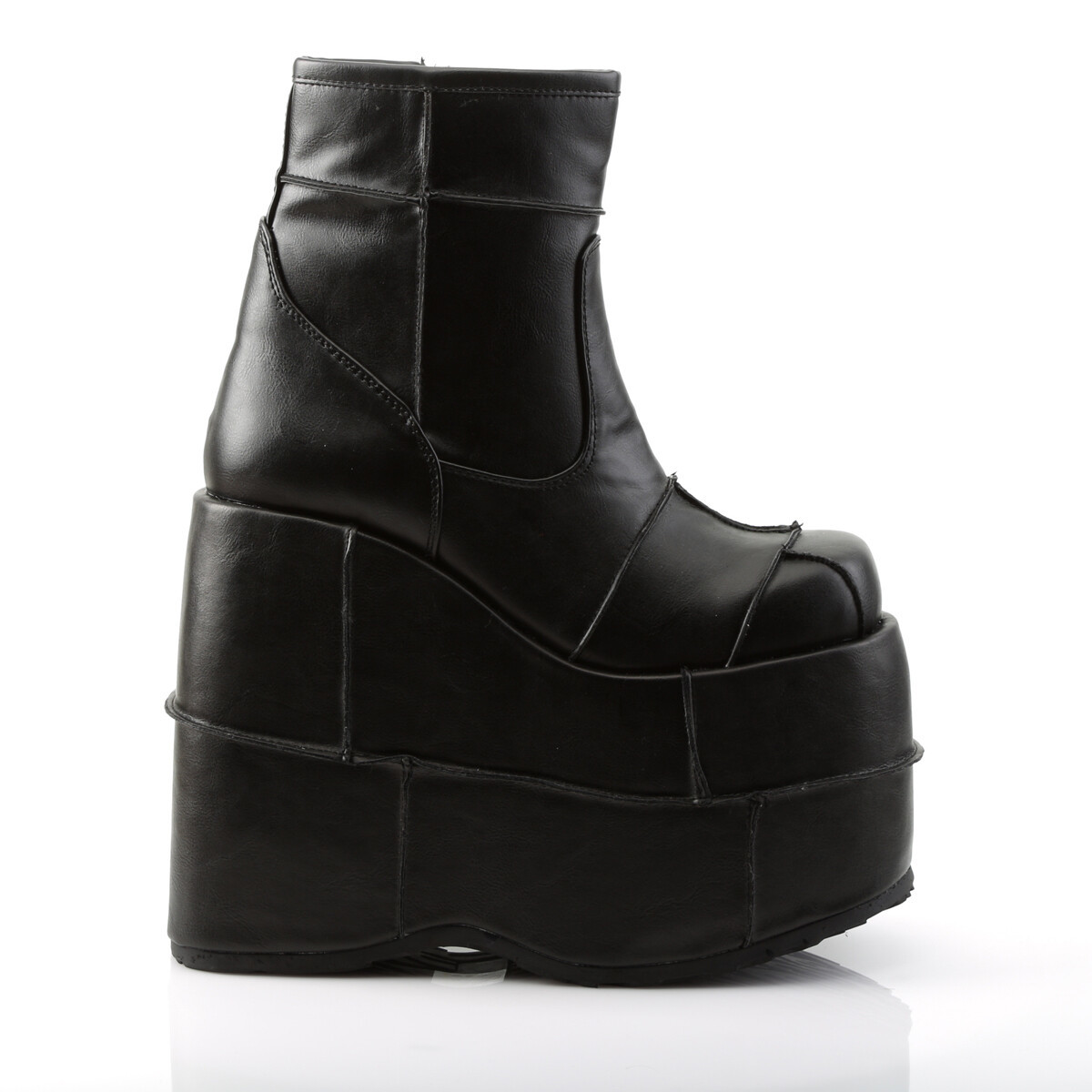 7" Platform Ankle Boot W/ Patching Details on Platform and Vamp, Side Zip