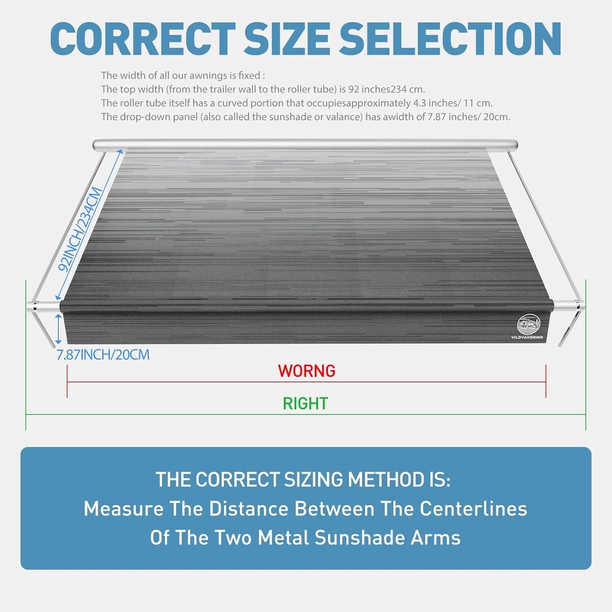 Easy Installation with No Special Tools: VildVandring RV awning fabric is designed for quick, hassle-free installation. The fabric is Hot Pressing/sewn with three polycords?one for the RV body roll tube and two for the canopy slots?ensuring the fabric fits tightly with no folds. The process requires no special tools, and we provide detailed step-by-step instructions and an instructional video, making installation easy even for beginners. Upgrade your RV canopy or camper awning effortlessly.