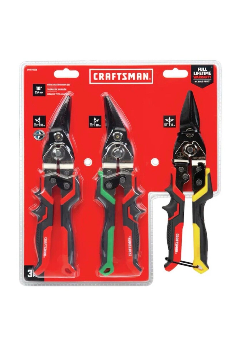 The CRAFTSMAN Aviation Set Snips 3-Piece Set is a high-quality hand tool set designed for precision cutting tasks. Crafted with durable 60CrV steel, this set includes three different snips for various cutting needs. The multicolor design adds a touch of style while the lifetime manufacturer warranty ensures long-lasting performance. Perfect for home, workshop, or aviation use, this set from Craftsman is a reliable and versatile addition to any toolkit.