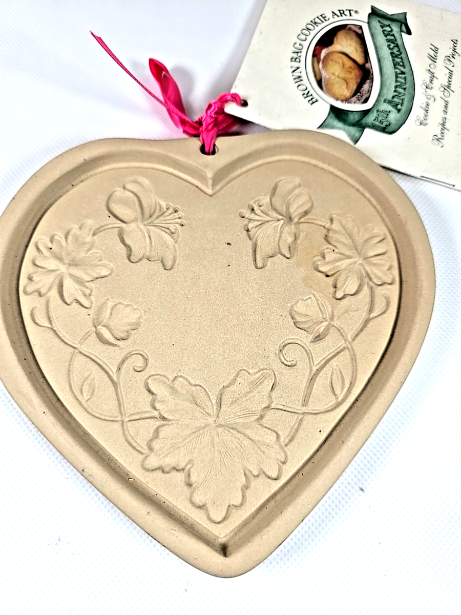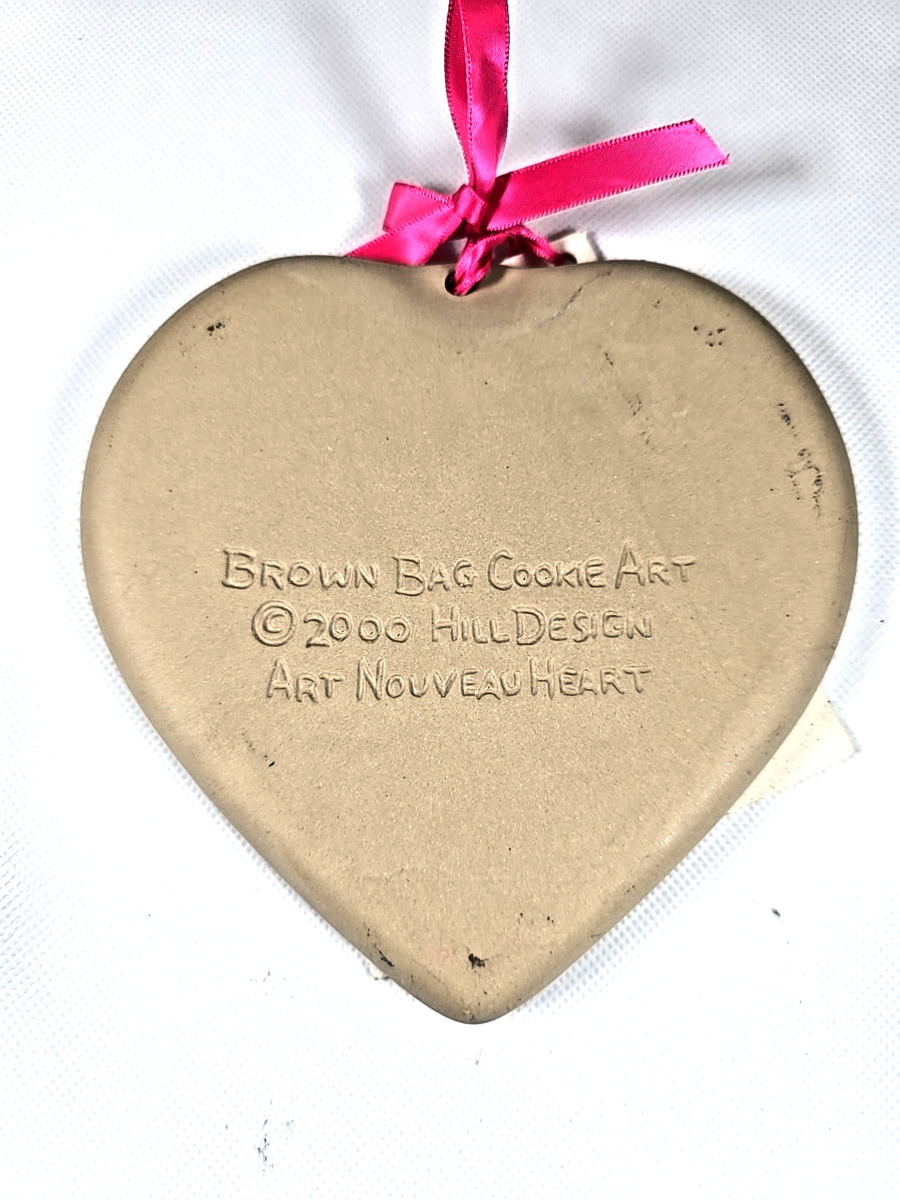 This rare 2000 Brown Bag Cookie Art mold features the ?Heart Hill? design with elegant Art Nouveau styling. Crafted in ceramic and measuring 5.75 inches, it's ideal for cookie making or as a charming collectible wall piece.