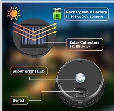 The ELUTENG Solar Light Replacement 4 Pack features top size 3.15 inch and bottom size 2.76 inch solar lights that are perfect for outdoor lighting in yards, gardens, and walkways. These light sensor-operated lights are powered by solar energy and come in a sleek black color, adding a touch of elegance to your outdoor spaces. Made by the trusted brand ELUTENG, these solar lights are lightweight at 0.6 pounds and easy to install, providing an efficient and eco-friendly lighting solution for your outdoor areas.