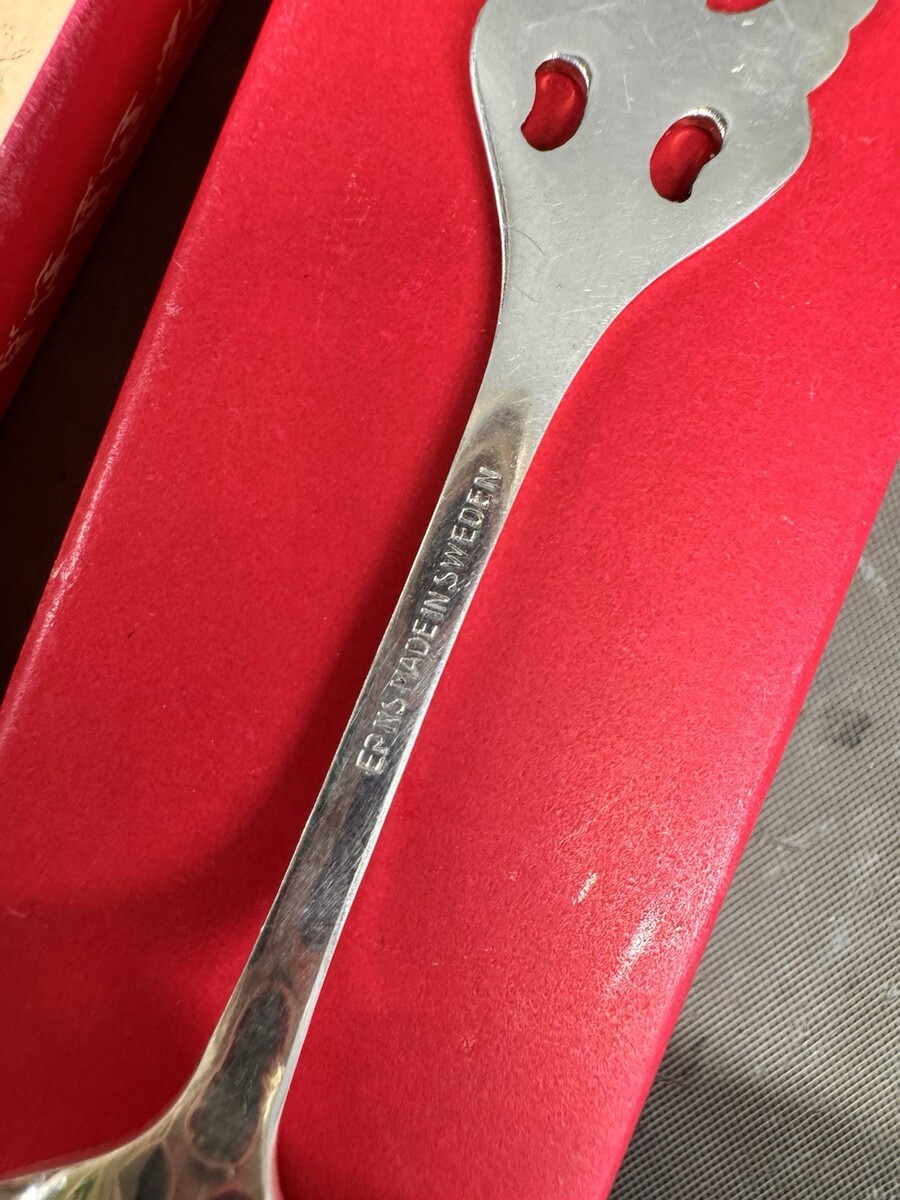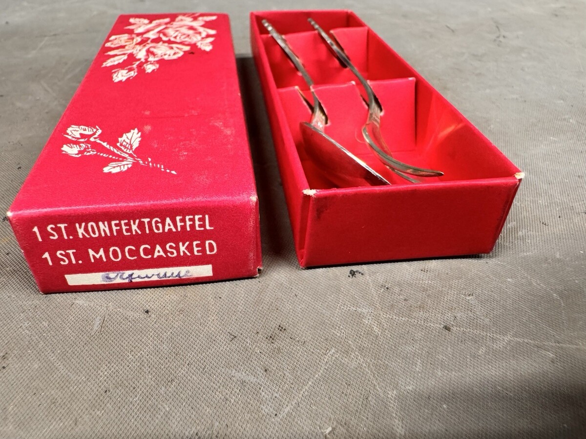 Vintage Silver Plated Expresso Spoon Sweets Confection Fork Sweden Floral Mocca