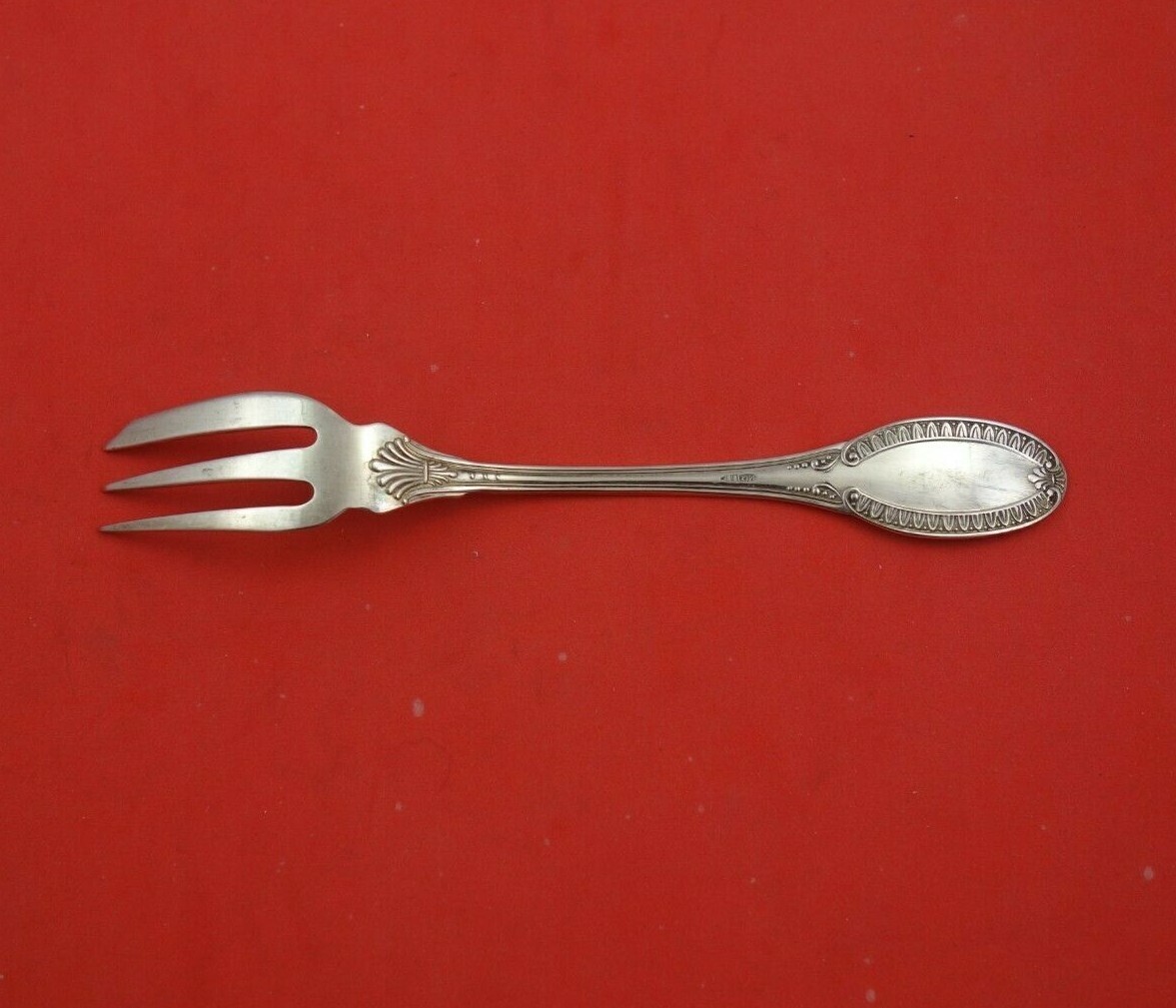 Italian .800 silver Pastry Fork 3-Tine looks like Empire by Buccellati 5 1/2" in the pattern Empire by Italian .800 sterling. It is not monogrammed and is in excellent condition.