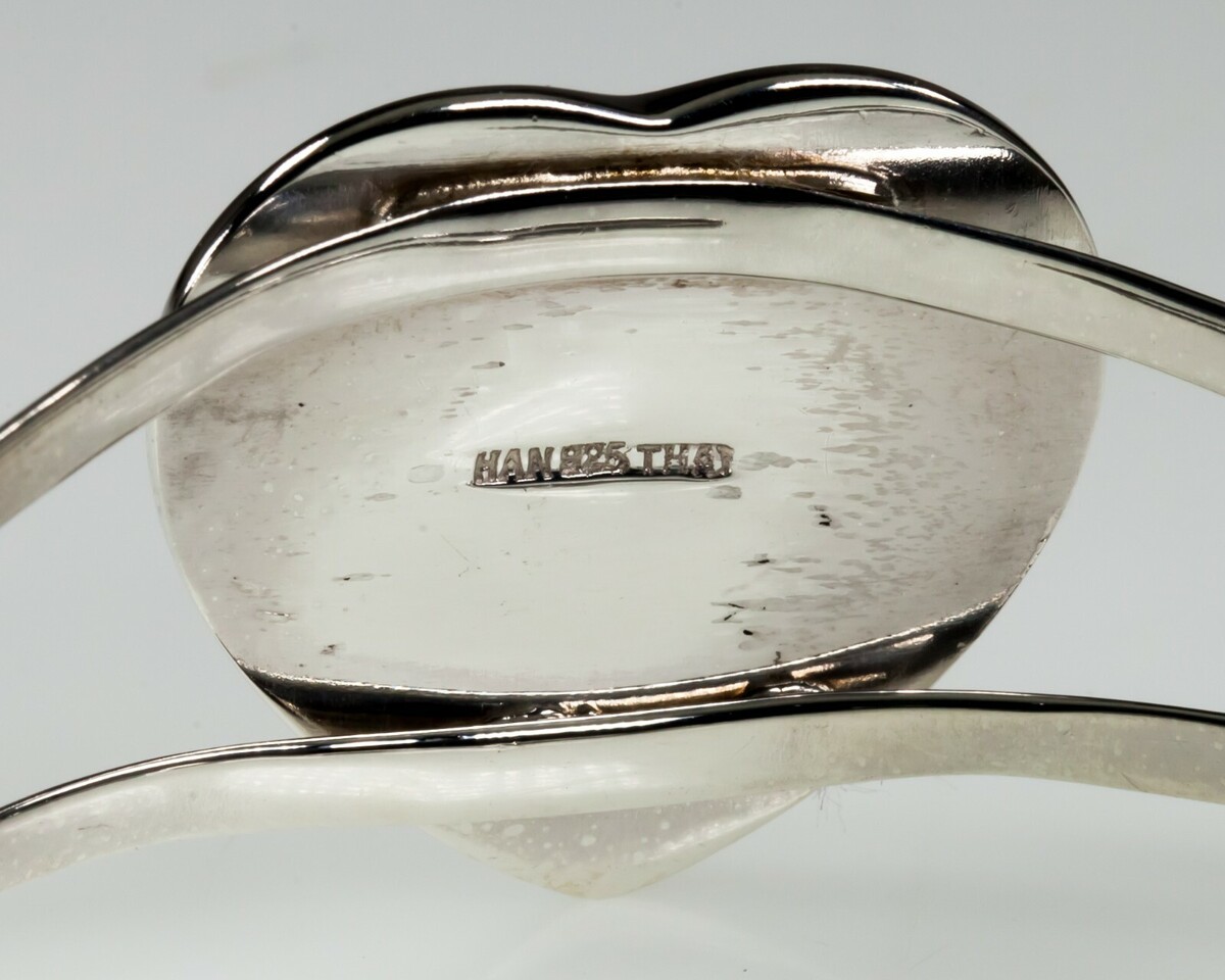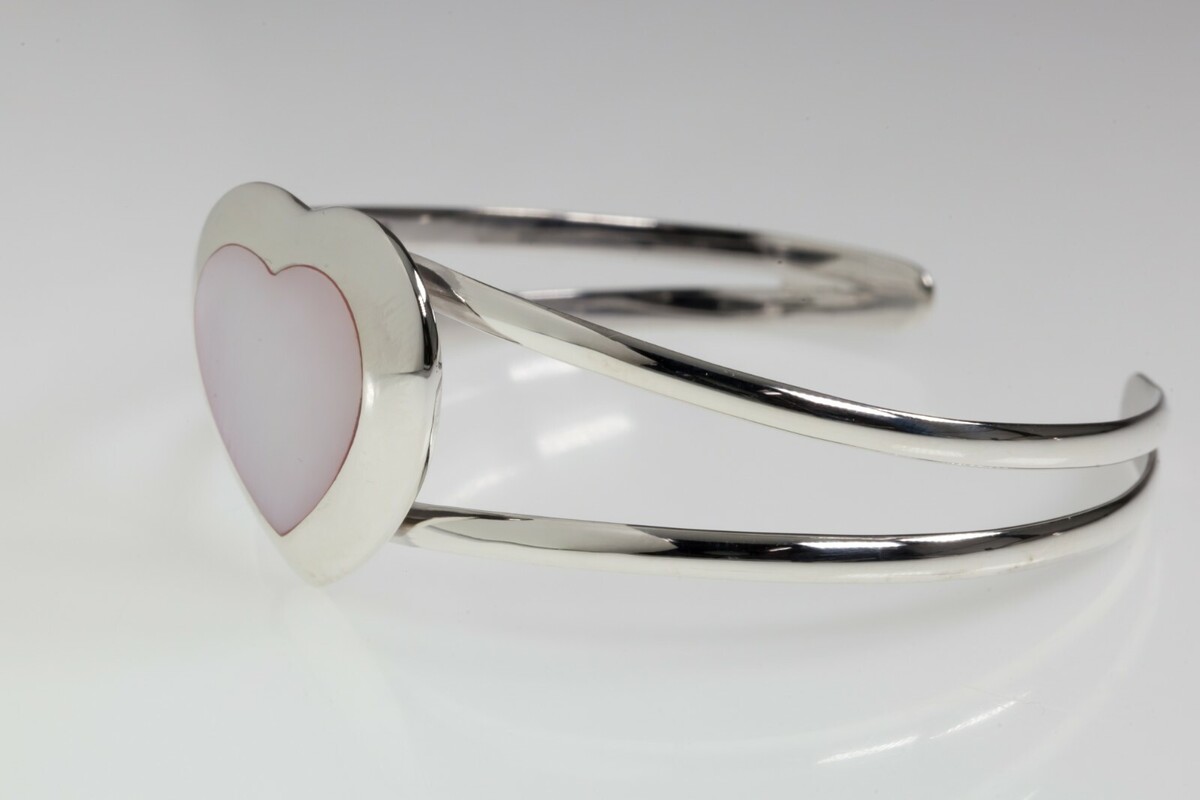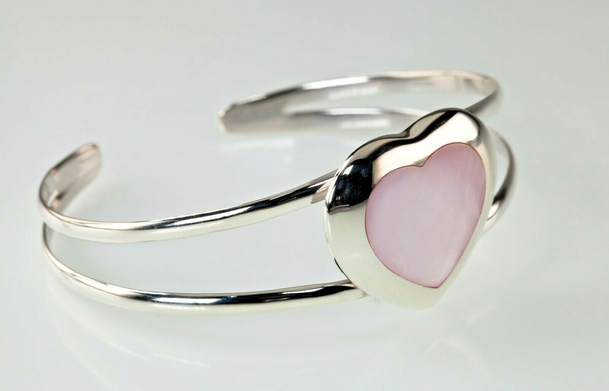 Damen Sterling Silber Rosa Perlmutt Herz Armreif