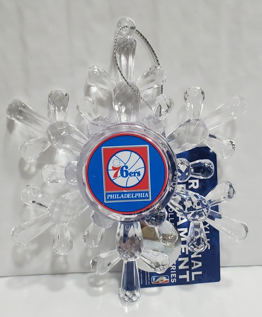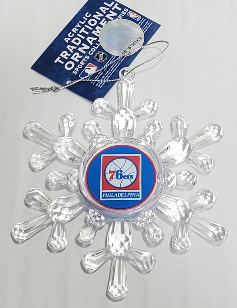 Officially Licensed Philadelphia 76ers Acrylic Snowflake Ornament.