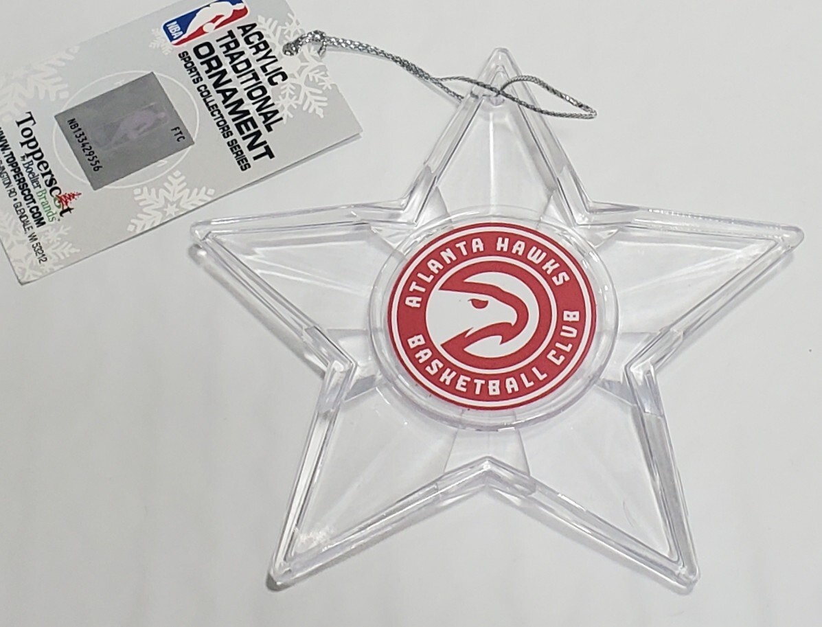 Officially Licensed Atlanta Hawks Acrylic Star Ornament.