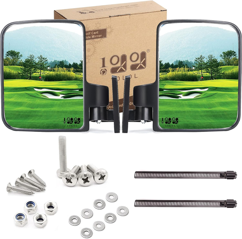 10L0L Golf Cart Side Mirrors for Yamaha, Club Car, EZGO, No Drilling