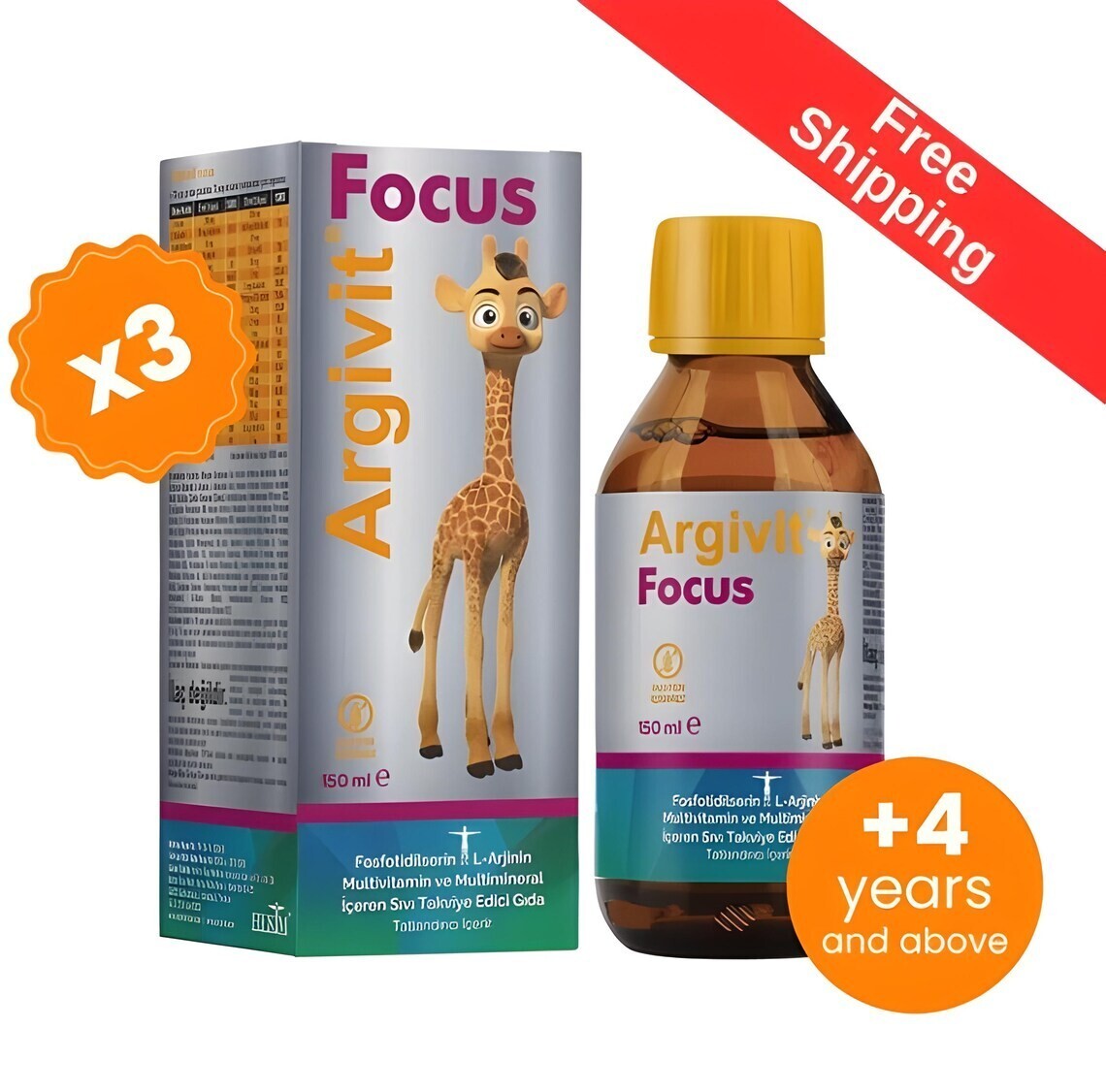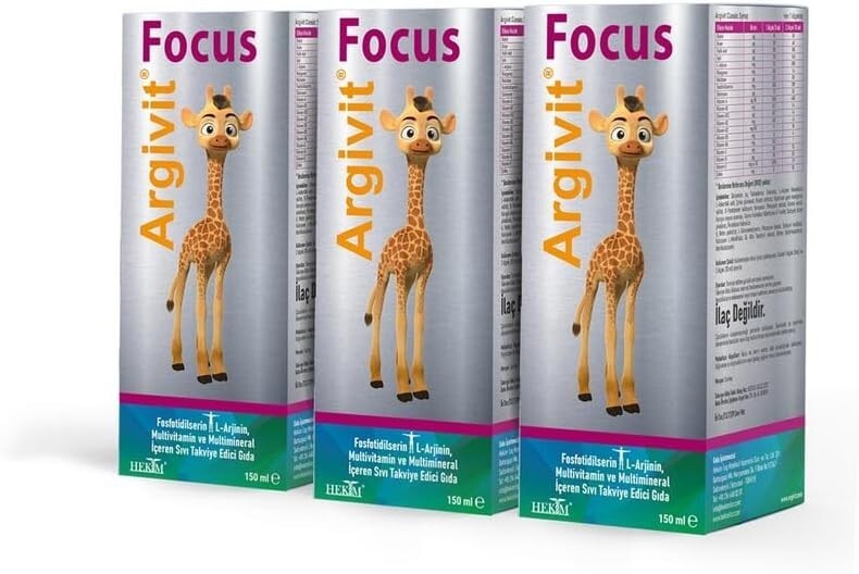 Argivit Focus 3 boxes Kid Syrups Containing L-Arginine,Phosphatid