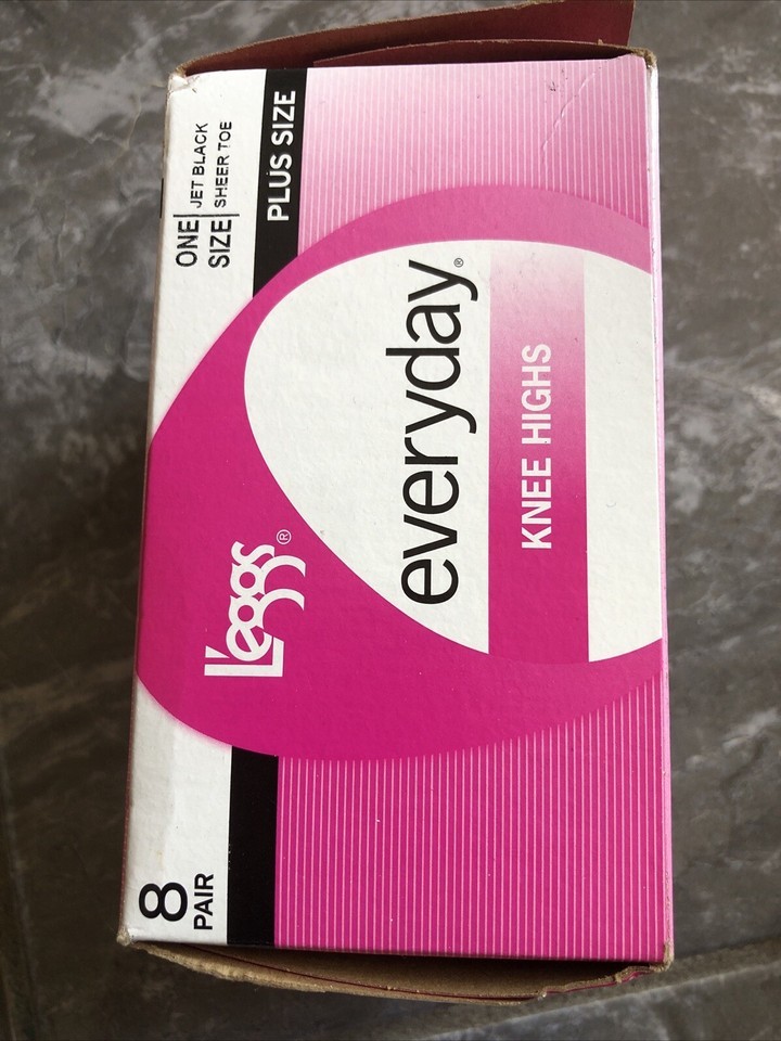 Leggs Everyday Plus Size Knee Highs Sheer Toe 8 Pair jet BlackNEW Box 2012
