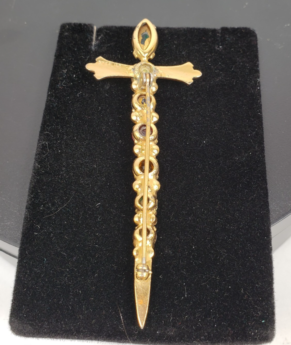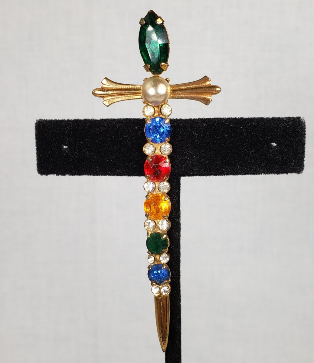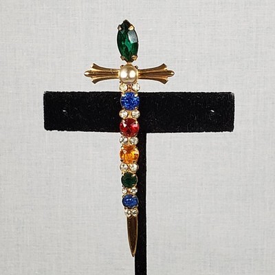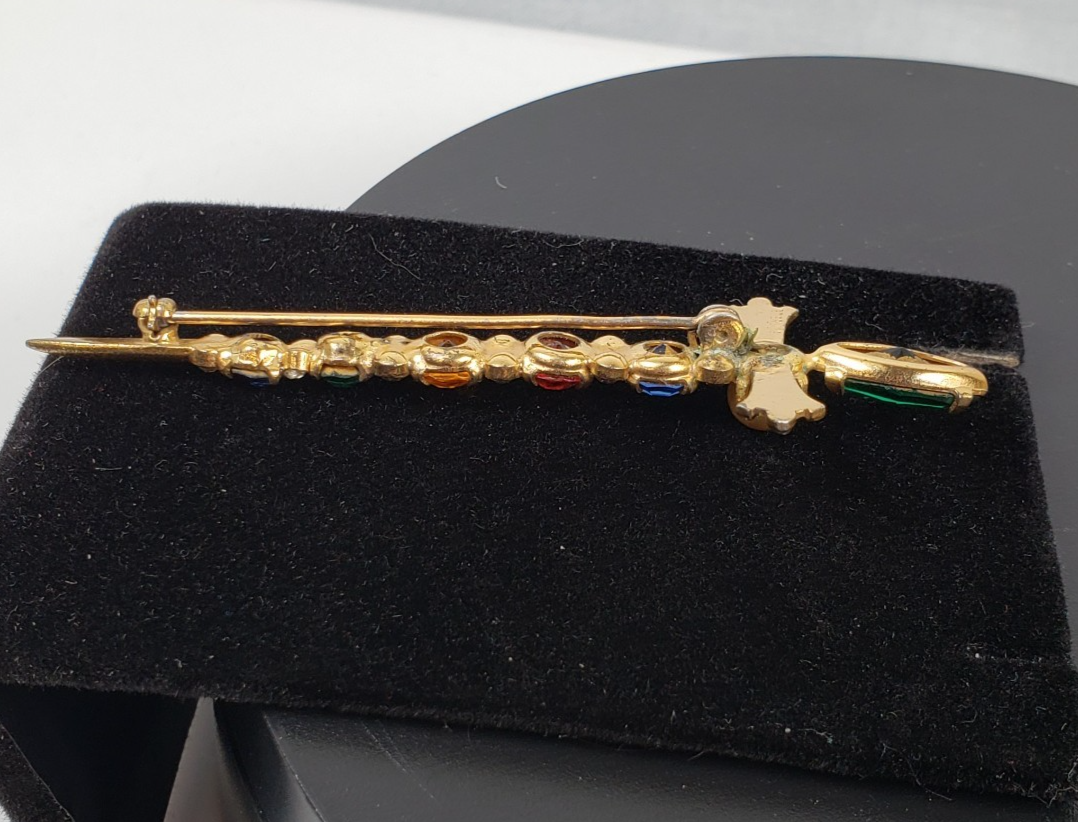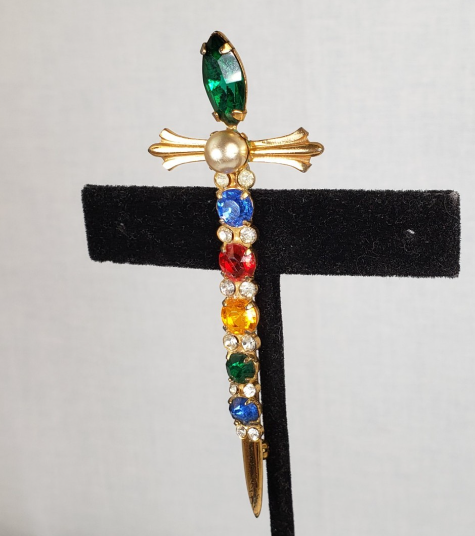 Vintage Sterling By Coro Vermeil Multicolor Rhinestone Sword Dagger Pin Brooch