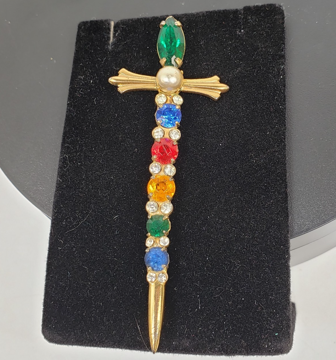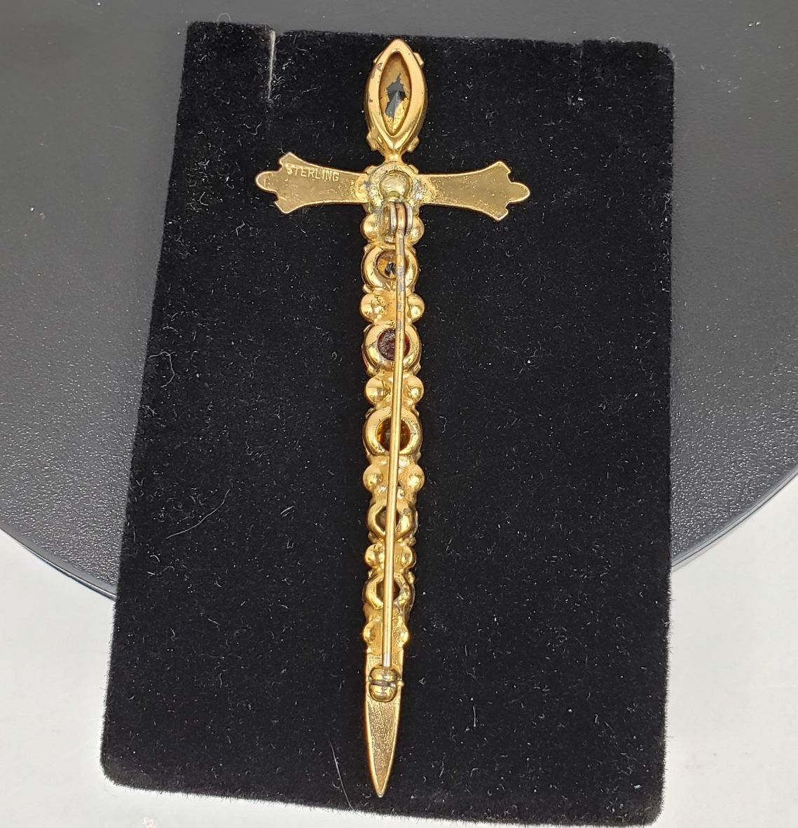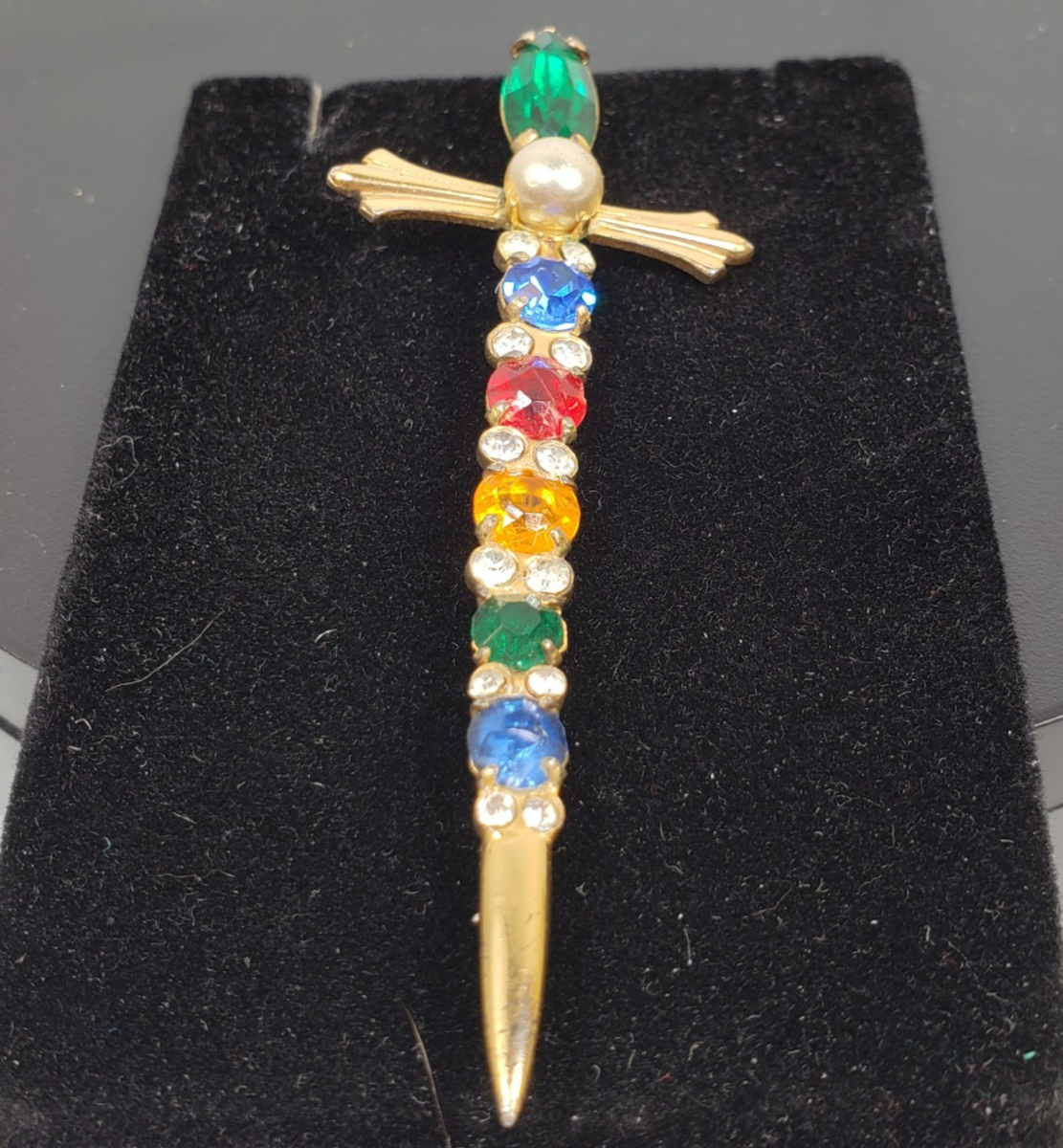 Vintage Sterling By Coro Vermeil Multicolor Rhinestone Sword Dagger Pin Brooch