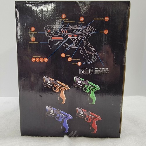 Laser Tag Guns And Vests Game 4 SETS - Pack for Kids Adults, Infrared, VIBRATES - New sealed! Has sound effects and lights, lives, infrared sensors, vibration. Images shows the actual laser tag set that will ship.