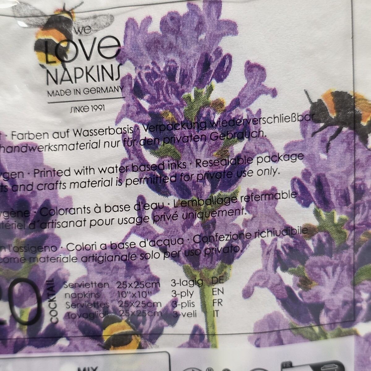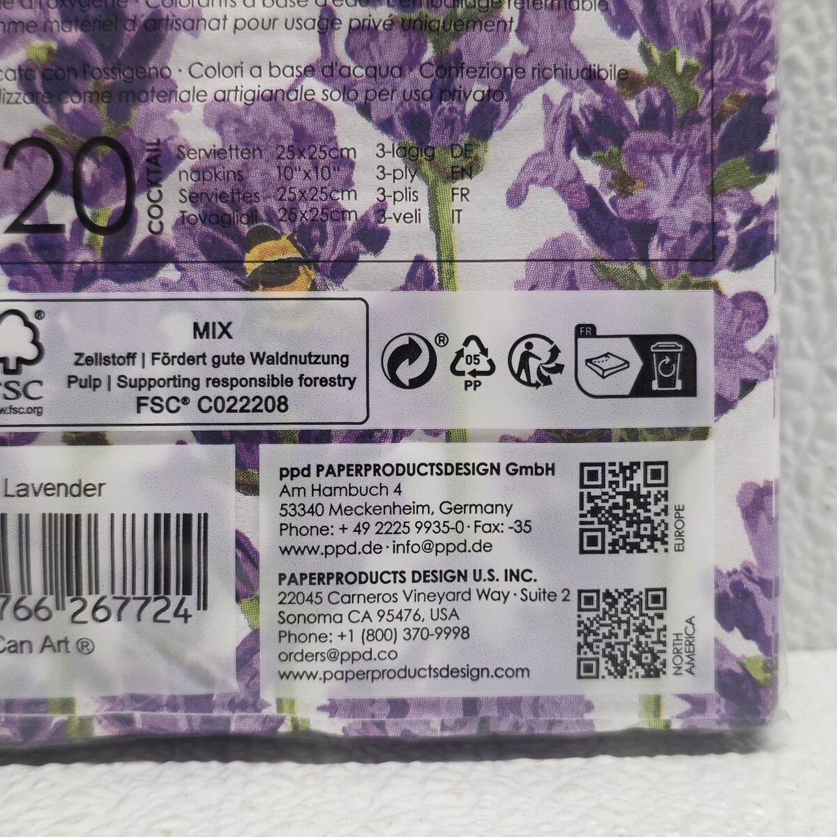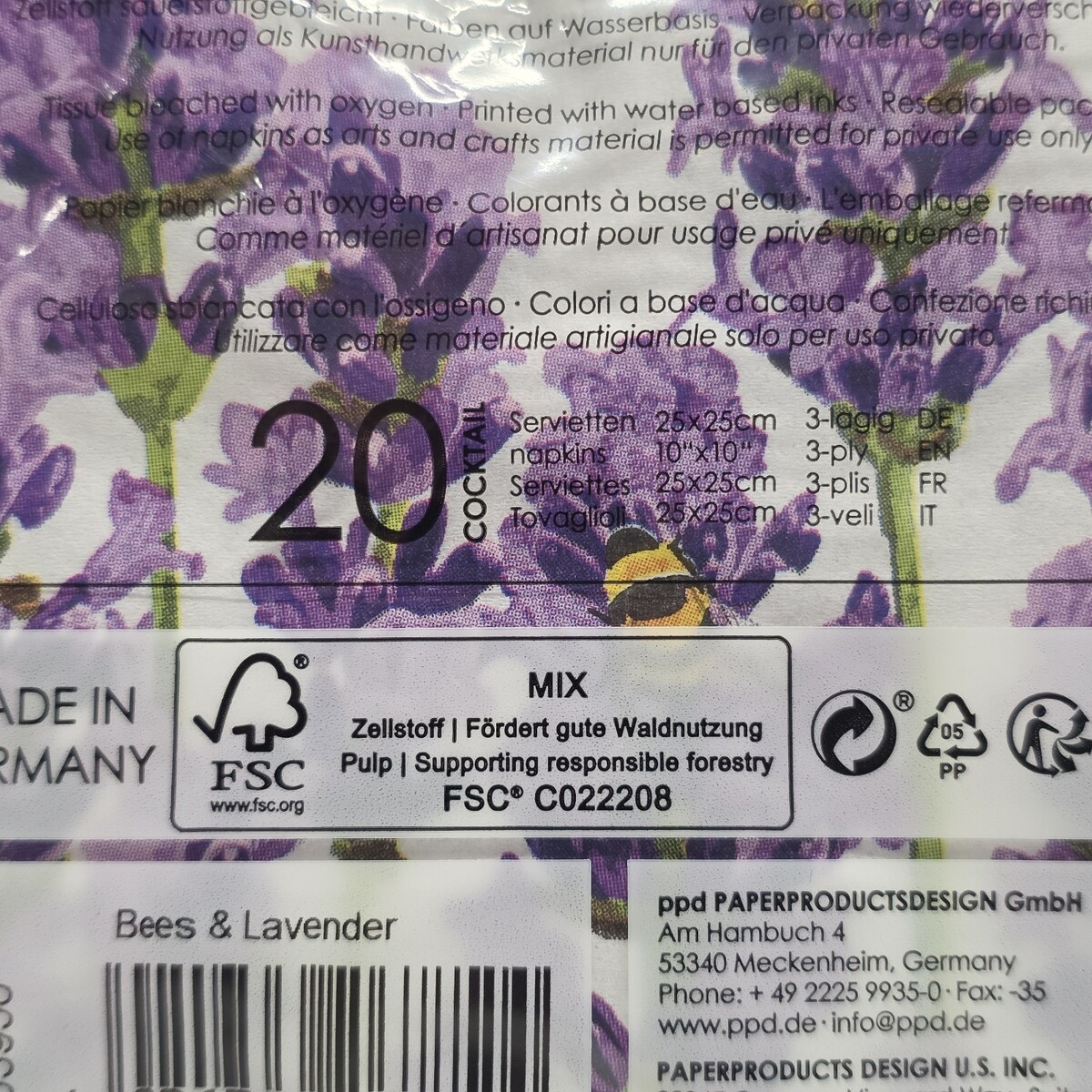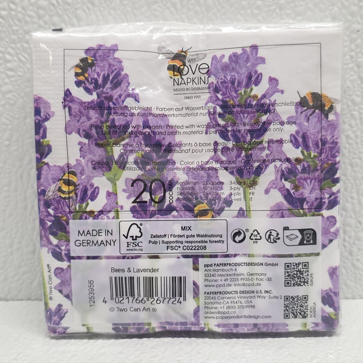 PPD Always Creative Spring Bees & Lavender Purple Flowers 20 Cocktail Napkins
