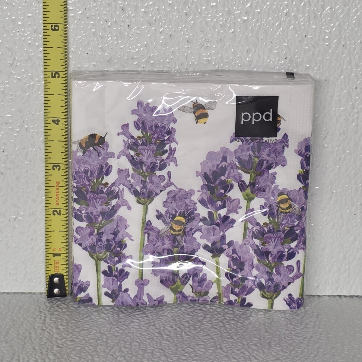 PPD Always Creative Spring Bees Lavender Purple Flowers 20 Cocktail Napkins. Images show actual item that will ship.