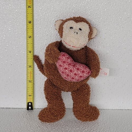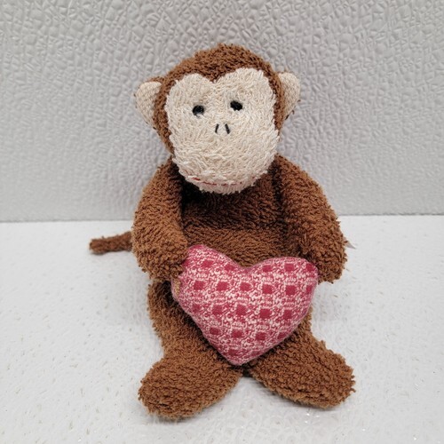 Russ Berrie Luv Pets Brown Monkey Red Heart Terrycloth Mini Plush Stuffed Animal. Images show actual item that will ship.