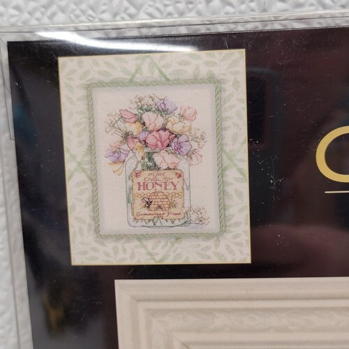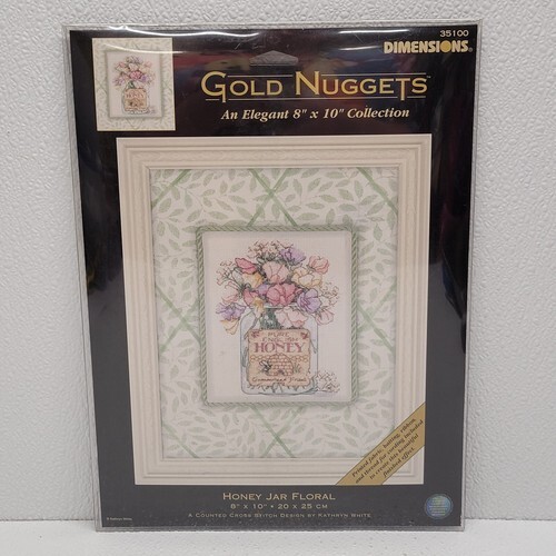 Dimensions Gold Nuggets Honey Jar Floral 8" x 10" Cross Stitch Kit 35100. Images show actual item that will ship.