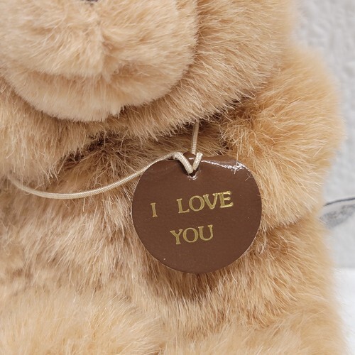 Vintage Russ Berrie Brown Bear Plush I Love You Tag Mini 5" Soft Plush. Images show actual item that will ship.