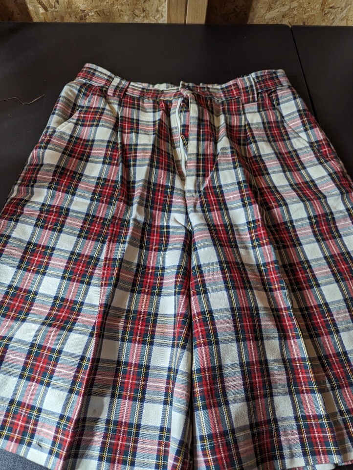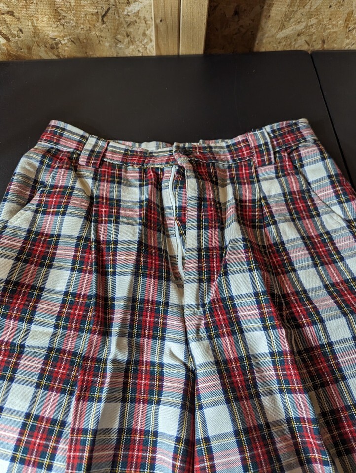 Gap ladies size 11 cotton plaid mom shorts are a comfortable and stylish addition to any wardrobe. Made from machine washable cotton, these shorts feature a flat front and slash pockets. The plaid pattern and multicolor design add a vintage touch, while the knit fabric ensures a comfortable fit. These shorts are perfect for juniors and women who want a relaxed, yet fashionable look. The button closure and 28-inch waist size make them easy to wear and pair with any top.