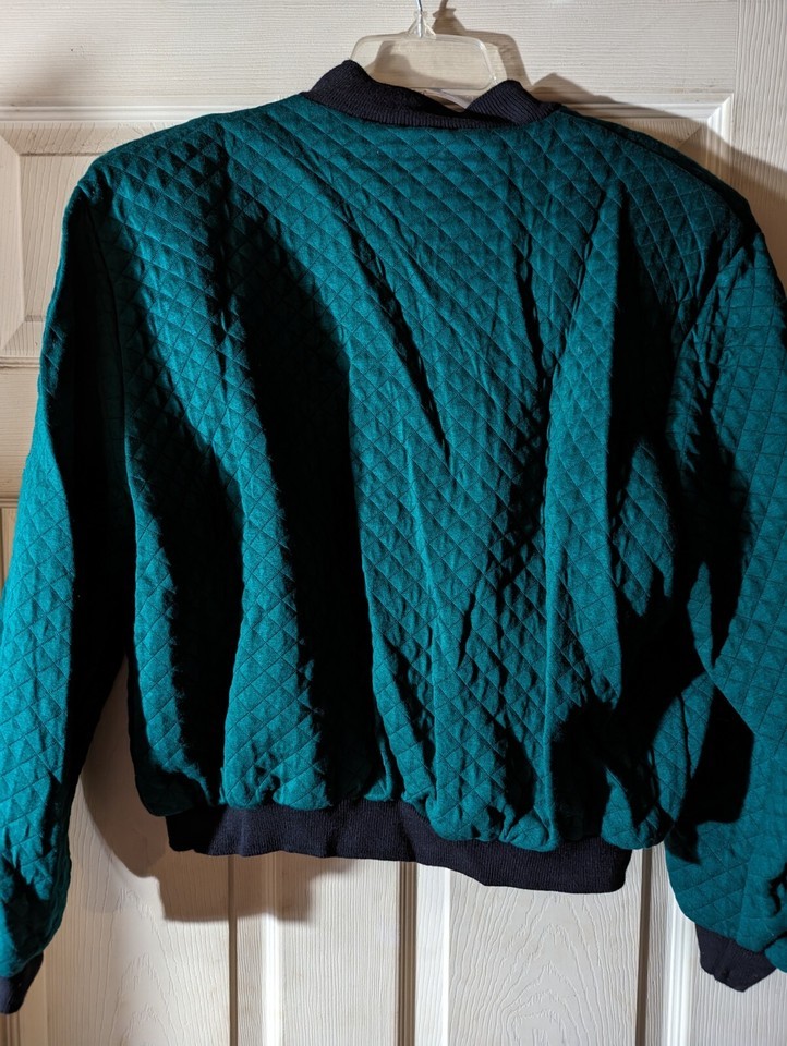 Full zip jacket with two pockets in a nice green shade that almost shines
