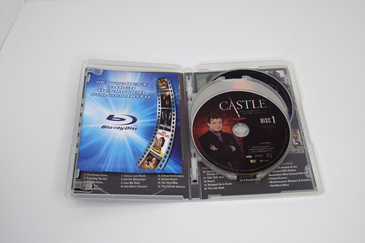 Castle The Complete Second Season (DVD, 5-Disc Set). Pre-owned in good condition. Some very light wear to the discs. Case is good with some normal shelf wear. Has the slip cover. See all photos for details and condition. Will ship USPS Media Mail.