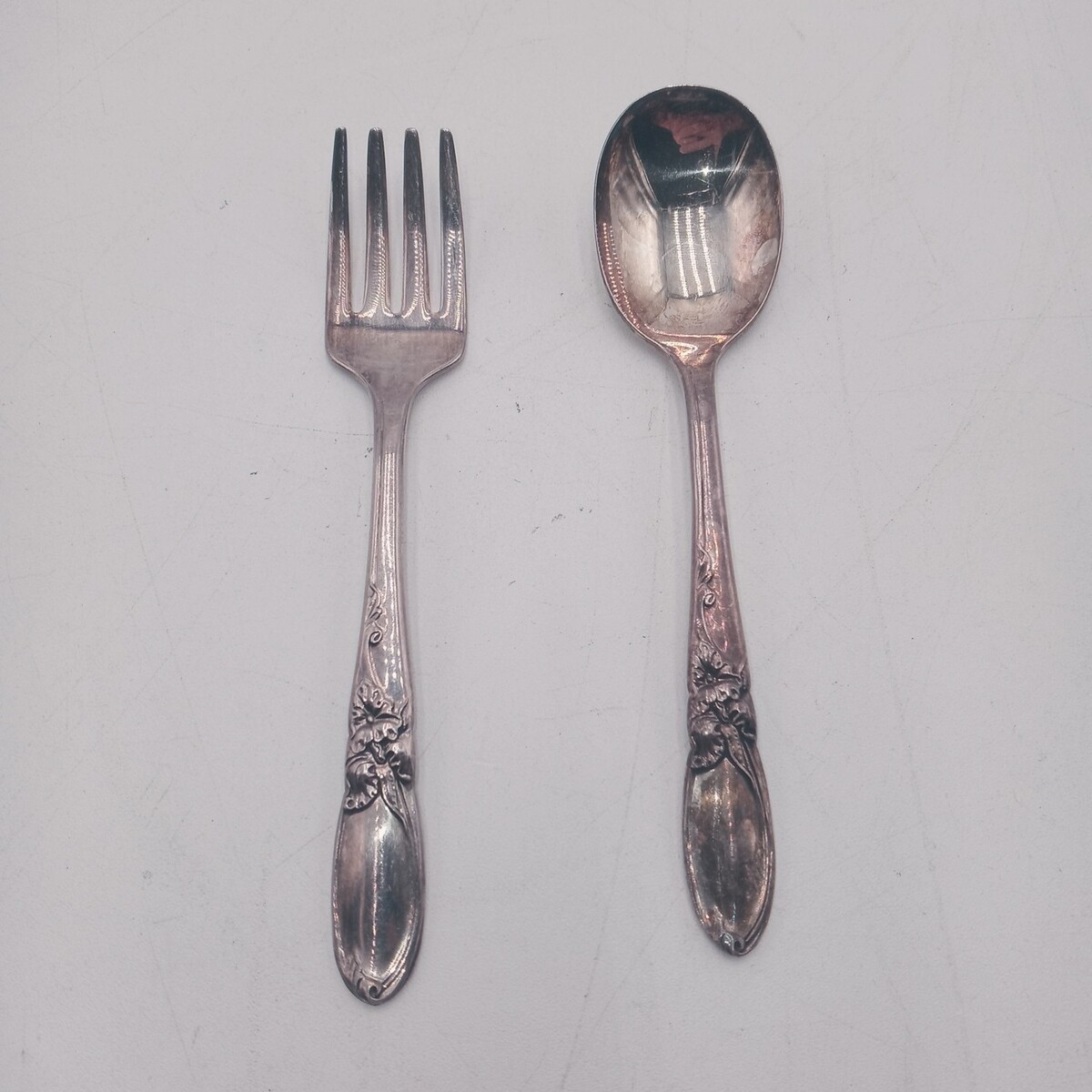 VTG White Orchid Oneida Community Silver Plated Infant Youth Spoon Fork Set