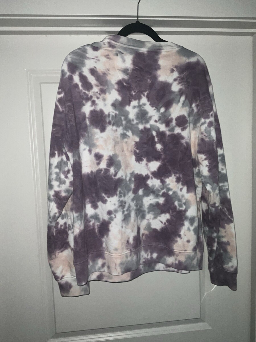 The Ladies Home Free "DE" Long Sleeve Multi Color Fleece Sweatshirt in size medium is a stylish pullover sweatshirt perfect for activewear occasions. Made from a comfortable cotton blended fabric, this sweatshirt features a round neck and long sleeves with a logo accent. The colorful pattern adds a vibrant look to the garment, and it is easy to care for with machine washable instructions. This classic fit sweatshirt is a great addition to any woman's wardrobe.
