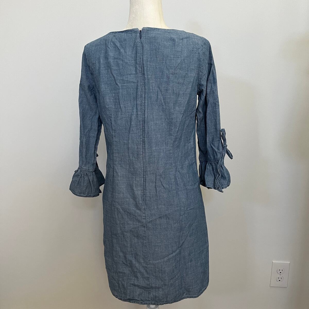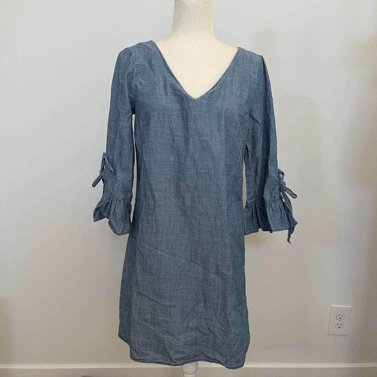 J.Crew Indigo Chambray Ruffle Tie-Sleeve Dress sz 6