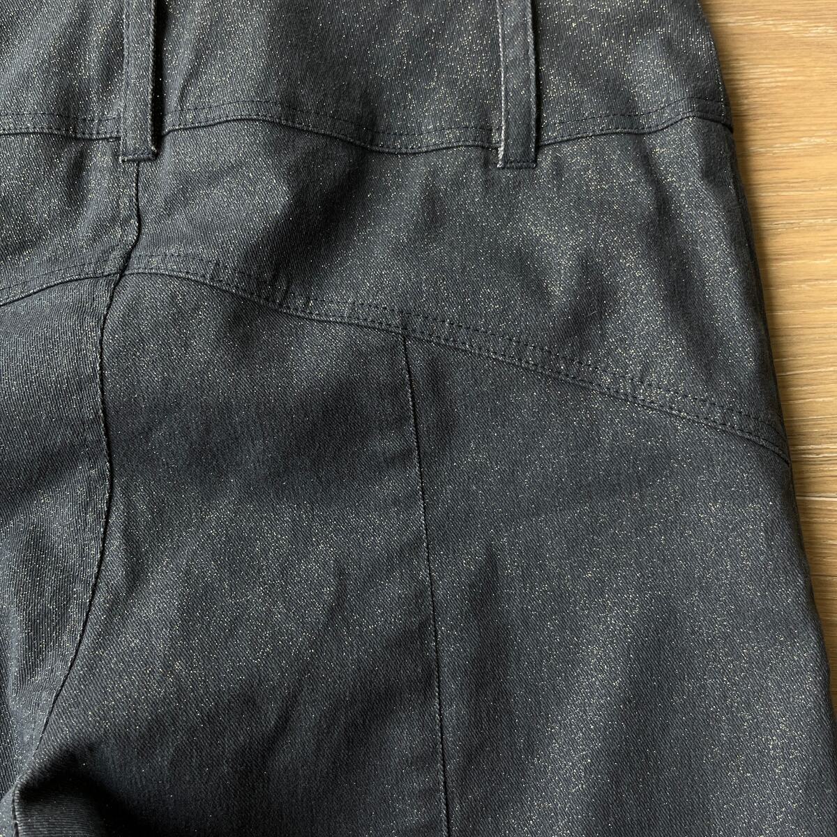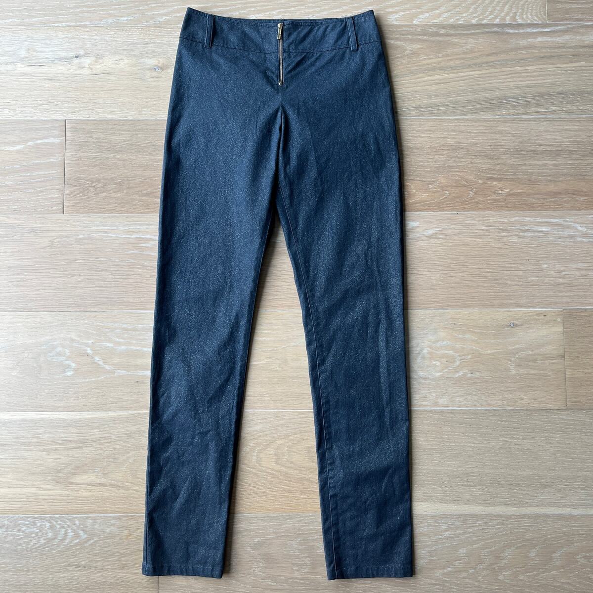 Karen Millen blue pants with subtle gold glitter throughout. Exposed gold tone front zipper. Perfect for a party or workwear!