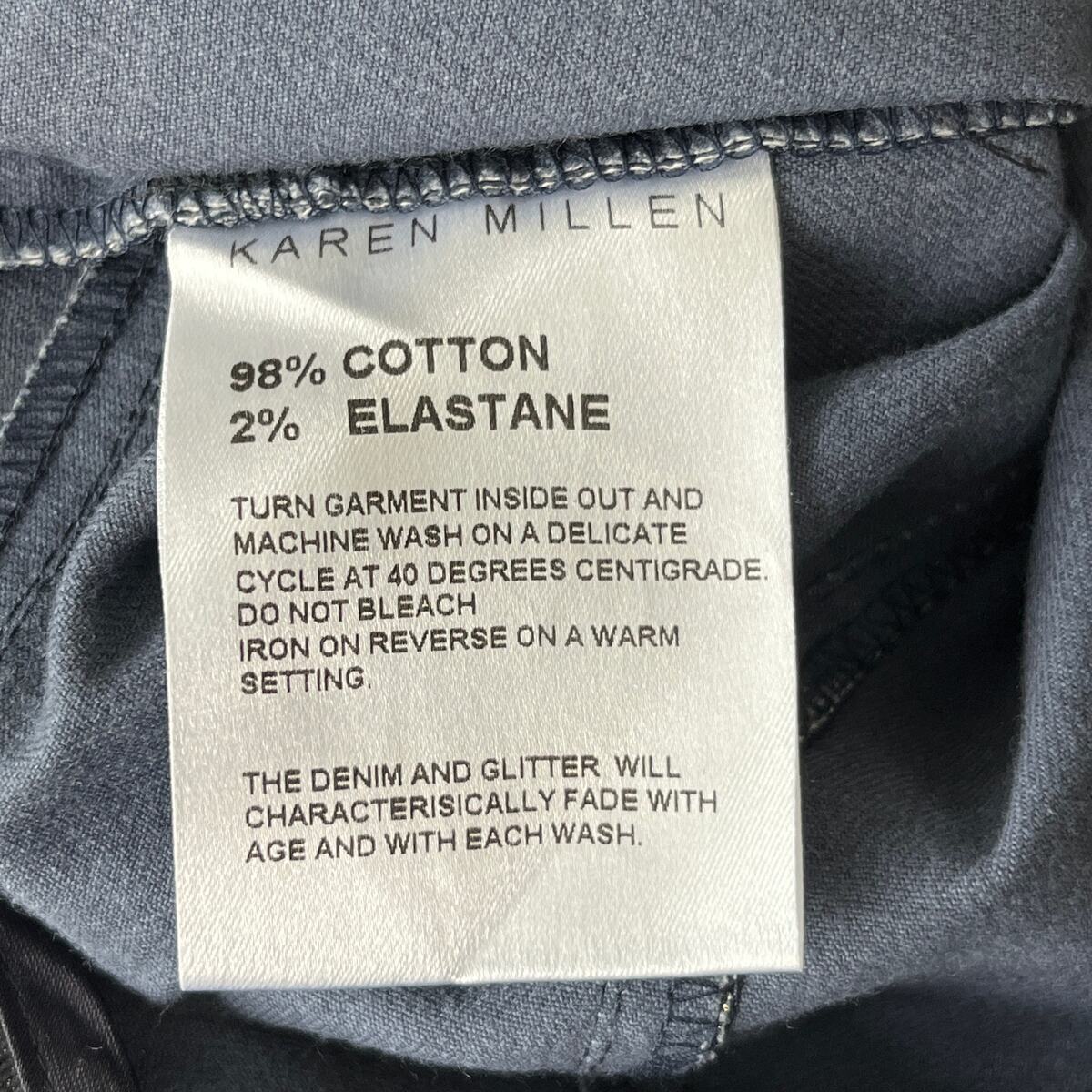 Karen Millen High Rise Gold Glitter Blue Skinny Pants