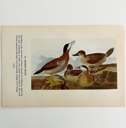 Ruddy Duck Bird 1950 Lithograph Art Print Audubon Nature First Edition DWU14B