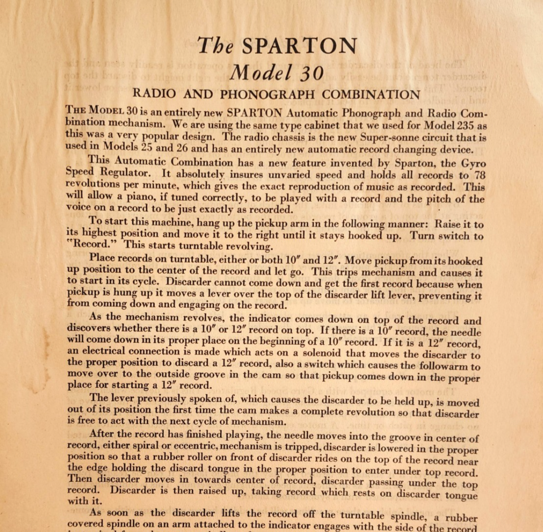 1931 Sparton Radio Phonograph Model 30 Info and similar items