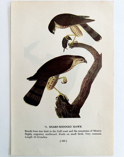 Sharp Shinned Hawk Bird 1950 Lithograph and similar items