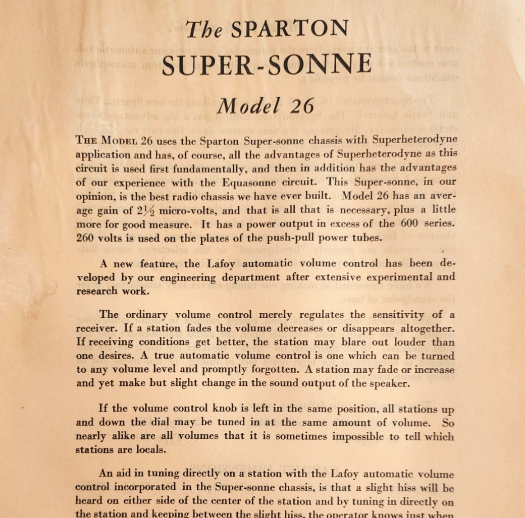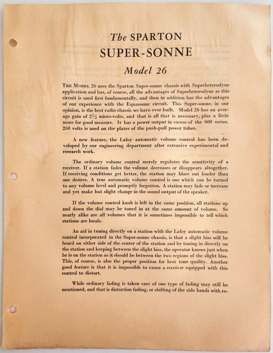 1931 Sparton Radio Super-Sonne Model 26 Info and similar items