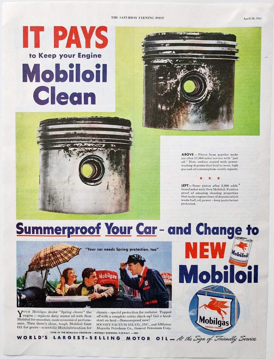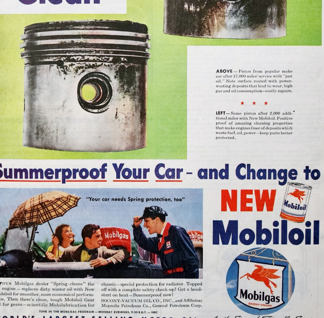 1947 Mobil Motor Oil And Gas Advertisement Gasoline Mobiloil Automobilia DWJJ22