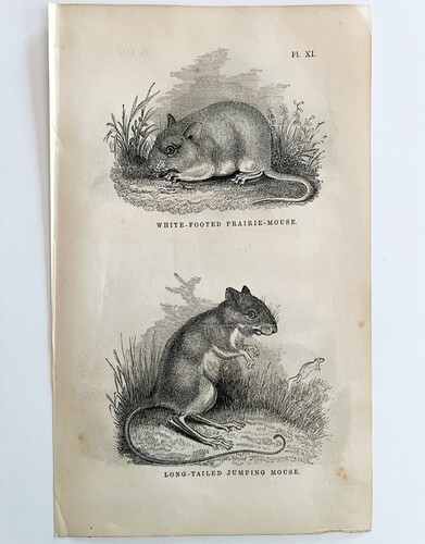 Prairie And Jumping Mouse Victorian 1856 Animals Art Plate Print Nature DWT15