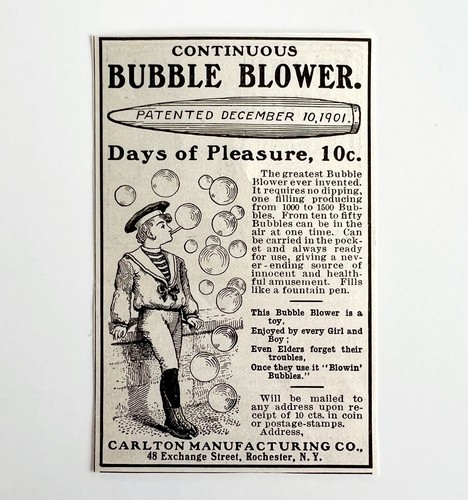 1904 Carlton Continuous Bubble Blower Advertisement Toy Ephemera 3.5 x 2.25"